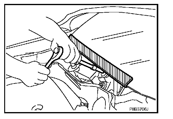 When performing the procedure after removing cowl top cover, cover the lower end of windshield with urethane, etc.