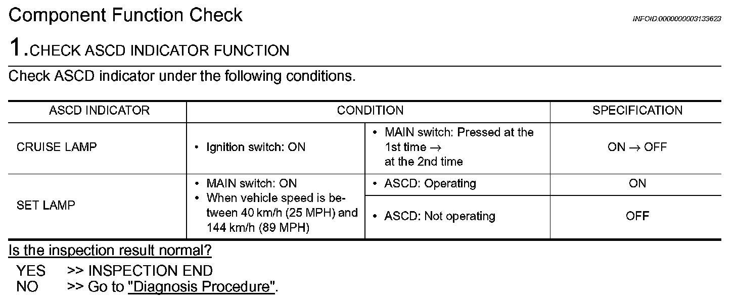 Refer to EC-56, "System Description" Automatic Speed Control Device (ASCD) for the ASCD function.