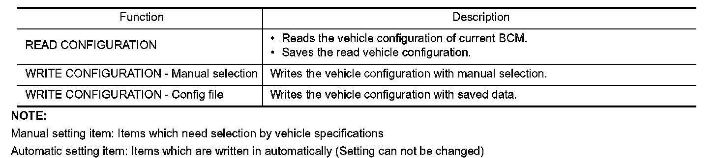 CONFIGURATION (BCM)CONFIGURATION (BCM) : Description