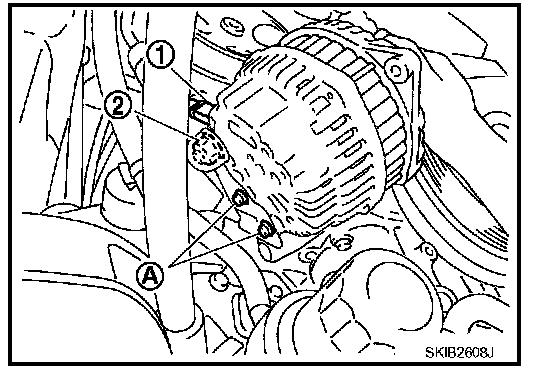 10. Pull and turn alternator, and then remove the harness bracket bolts (A).
