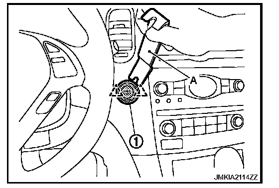 Remove the push-button ignition switch fixing pawl using a remover tool (A), and then remove push-button ignition switch (1).