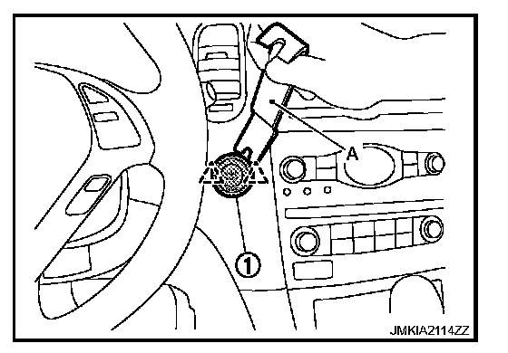 Remove the push-button ignition switch fixing pawl using a remover tool (A), and then remove push-button ignition switch (1).