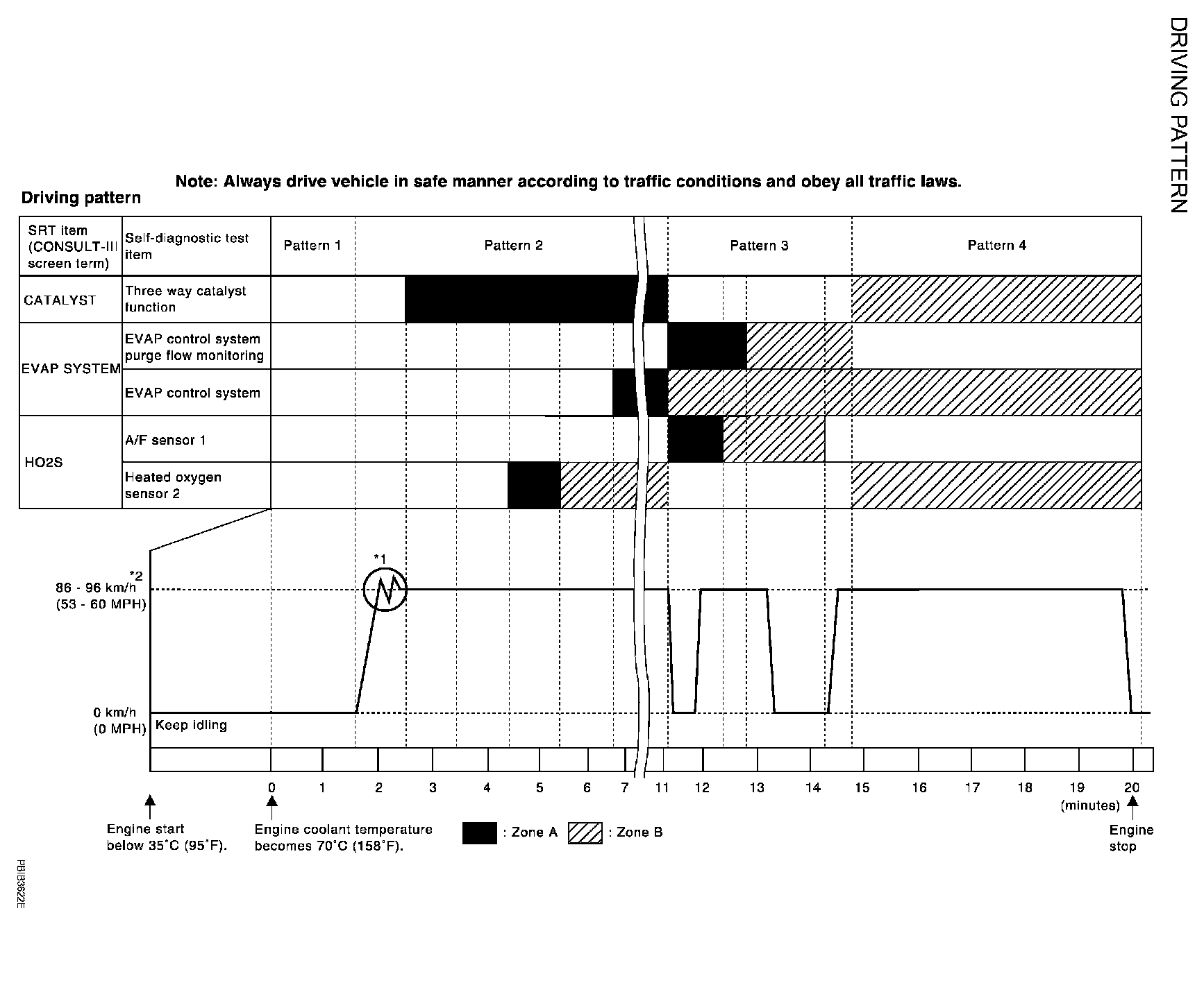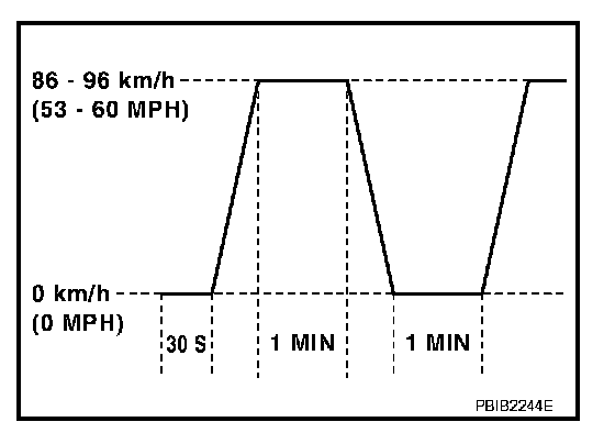 *1: Depress the accelerator pedal until vehicle speed is 90 km/h (56 MPH), then release the accelerator pedal and keep it released for more than 10 seconds. Depress the accelerator pedal until vehicle speed is 90 km/h (56 MPH) again.