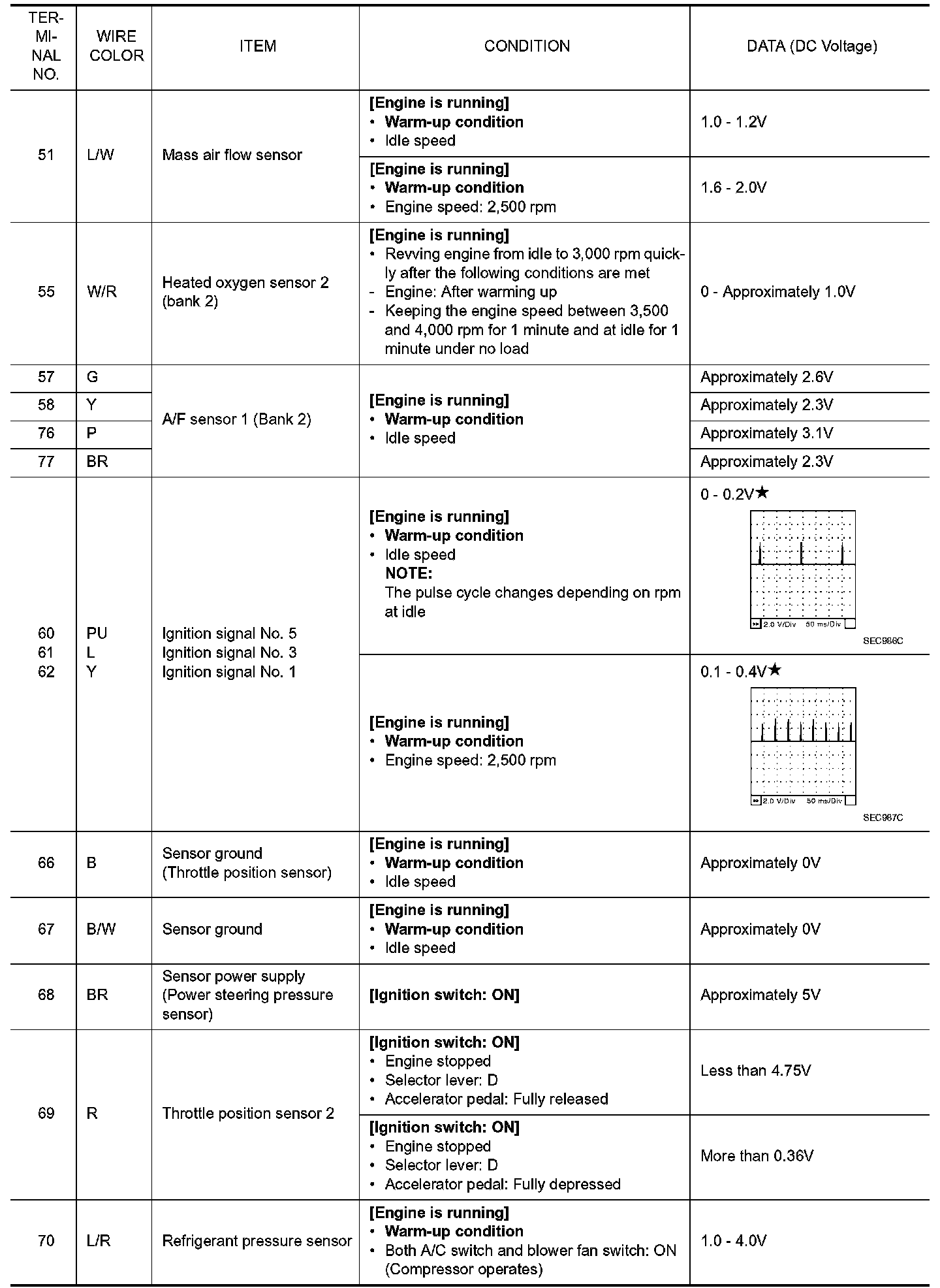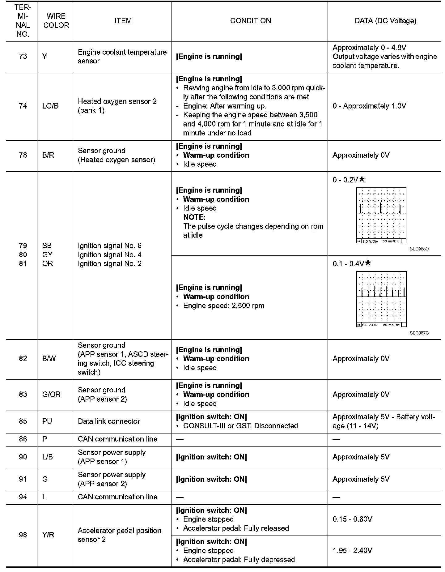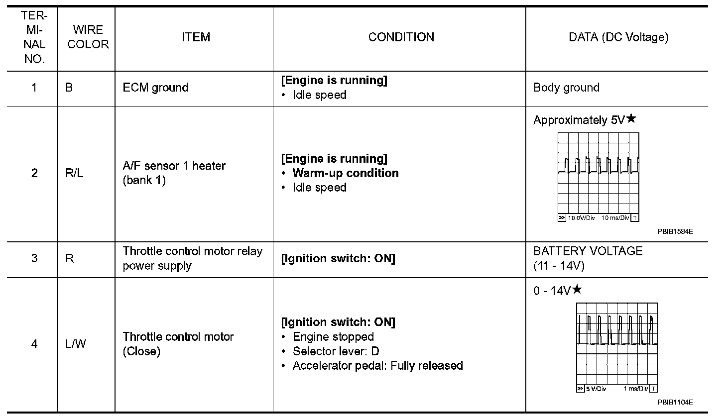 ECM Harness Connector Terminal LayoutECM Terminal and Reference Value