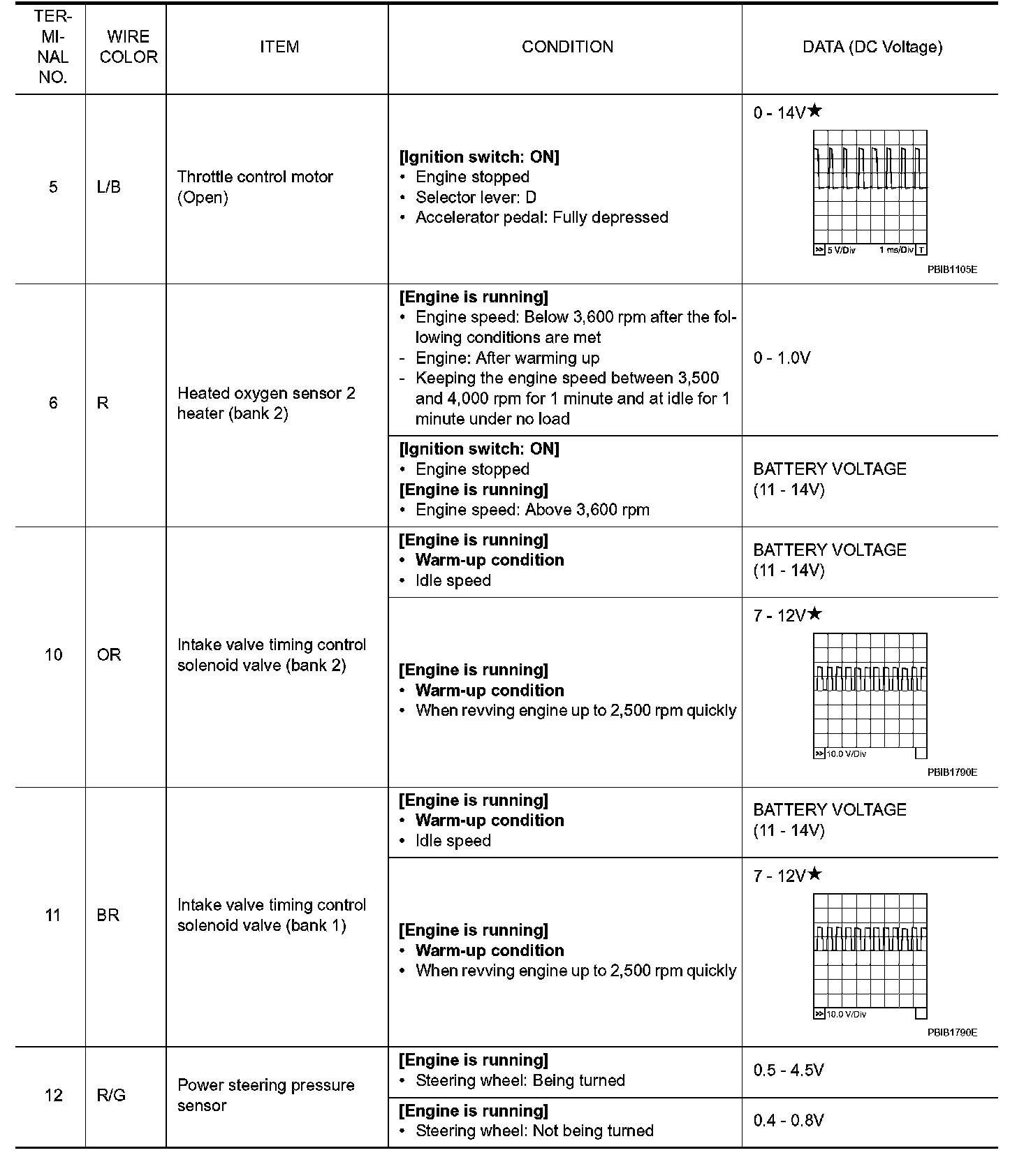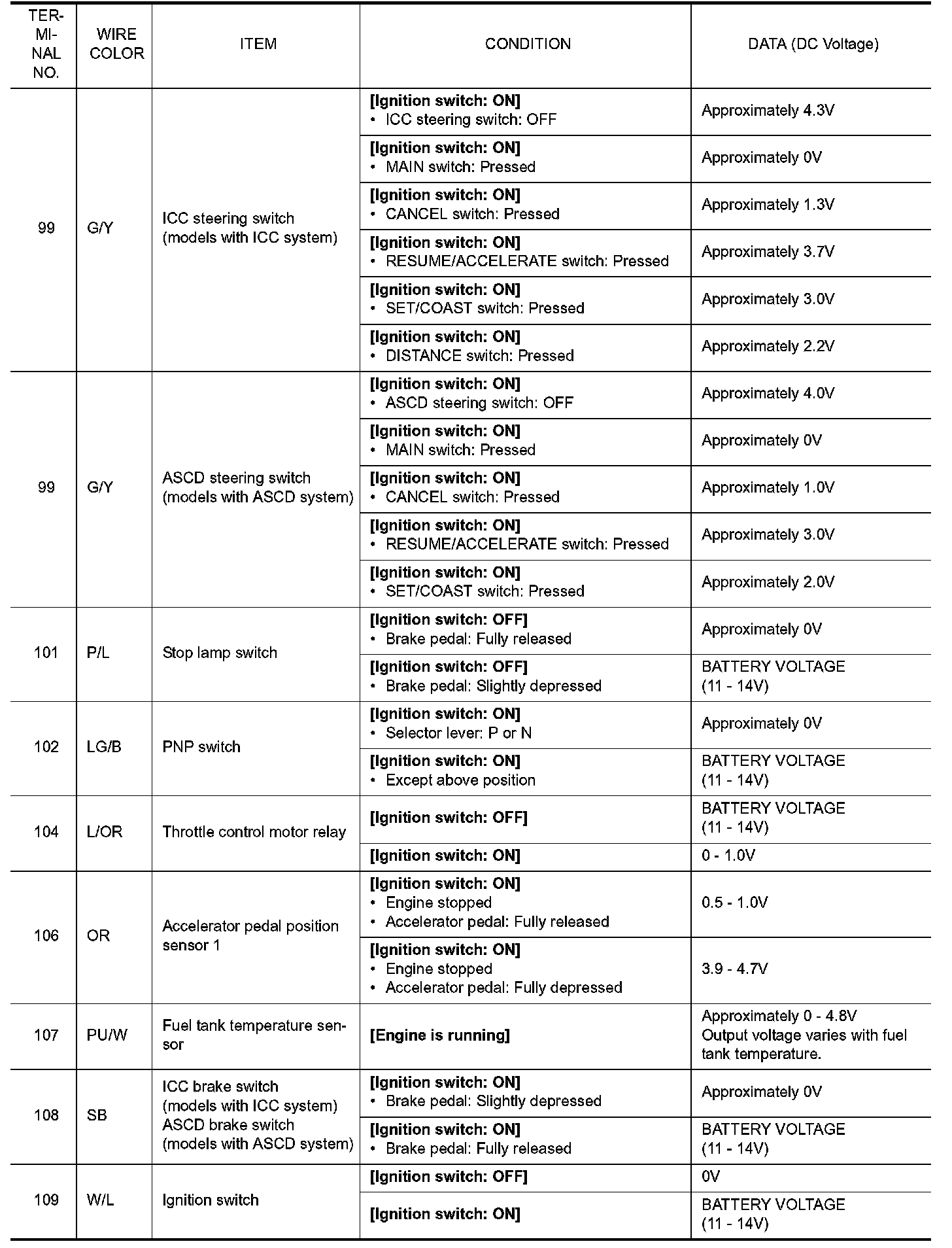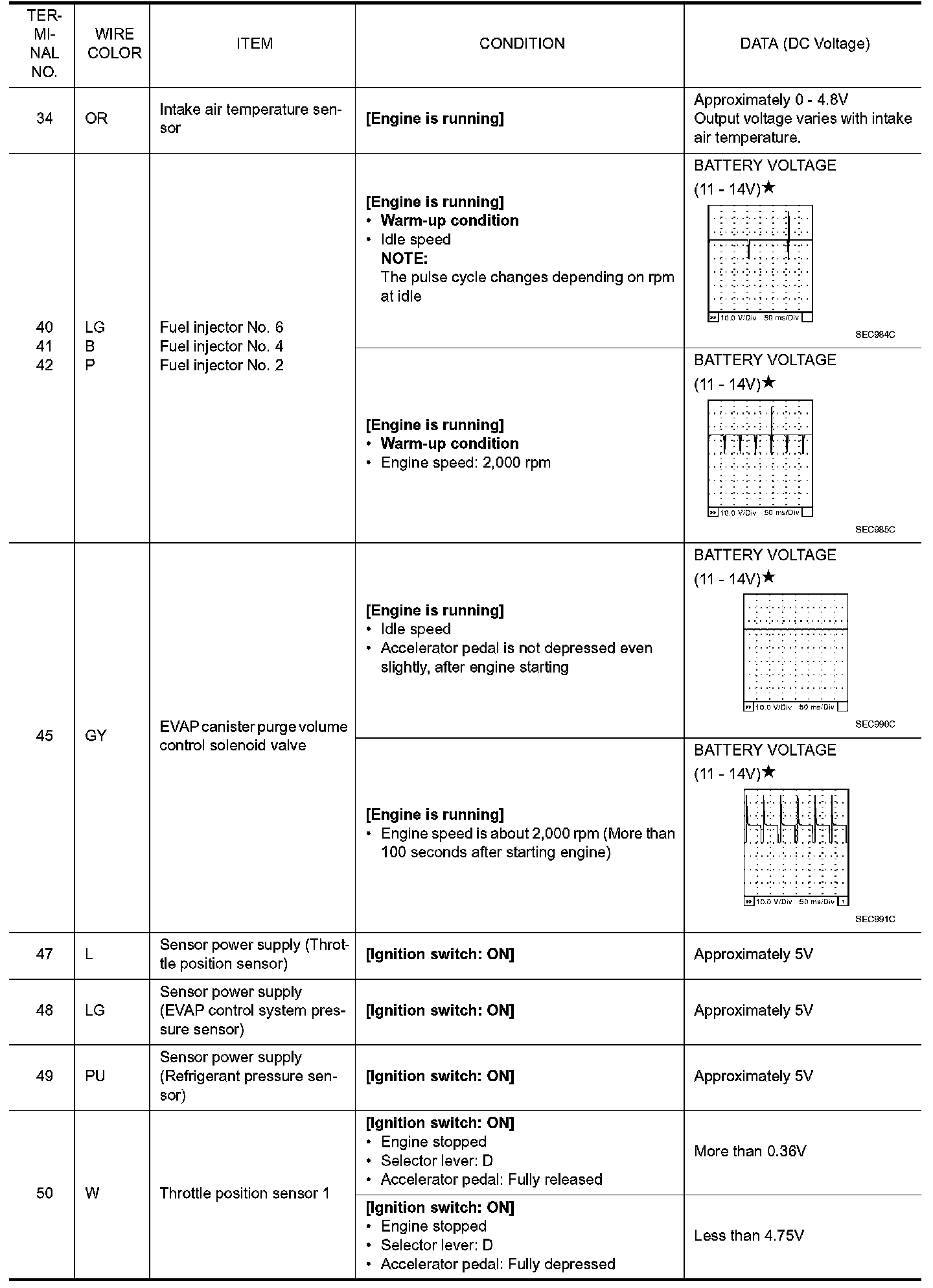 ECM Harness Connector Terminal LayoutECM Terminal and Reference Value