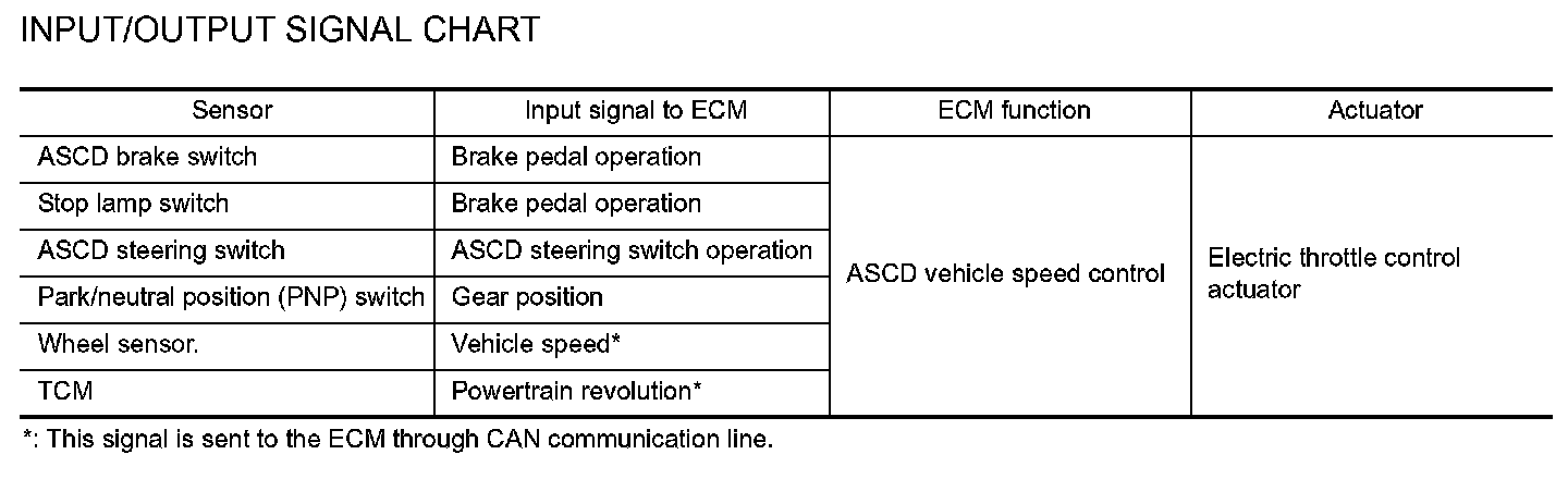 When the ECM detects any of the following conditions, the ECM will cancel the cruise operation and inform the driver by blinking indicator lamp.