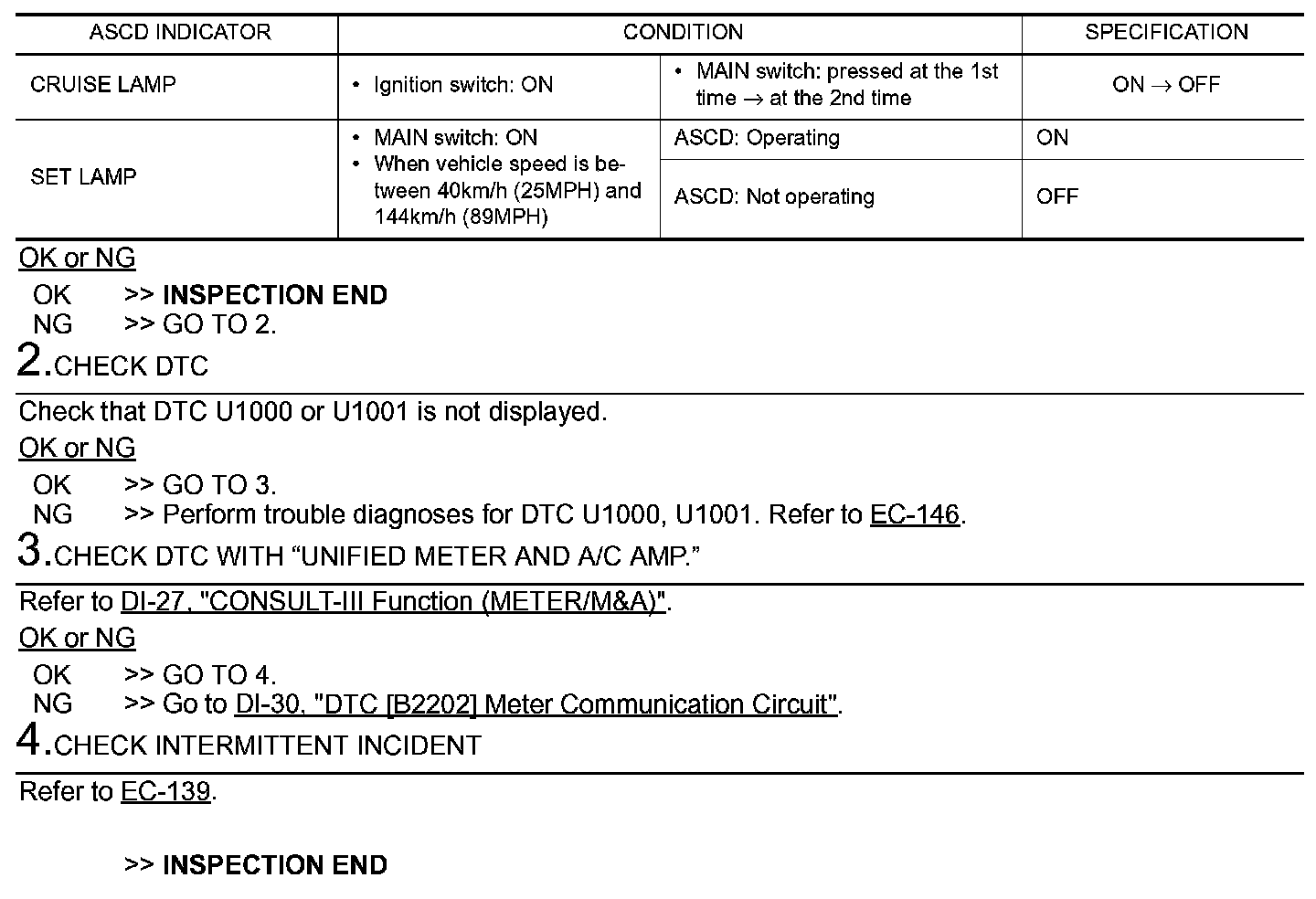 Refer to EC-37 for the ASCD function. Automatic Speed Control Device (ASCD)
