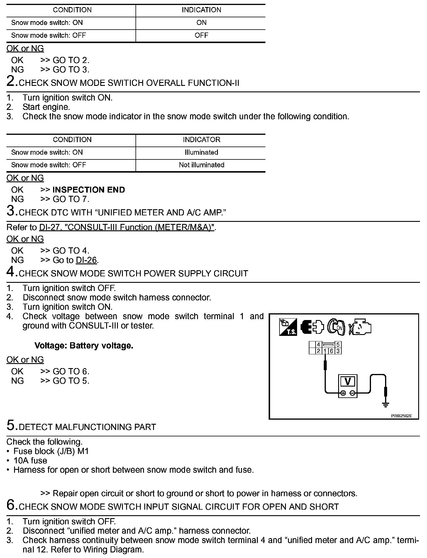 If NG, replace snow mode switch.