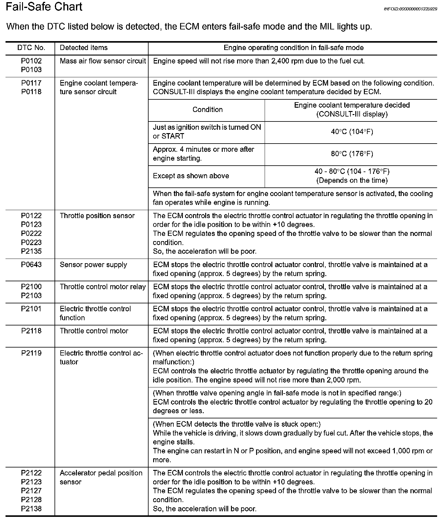 Therefore, when electrical controlled throttle and part of ECM related diagnosis are continuously detected as NG for 5 trips, ECM warns the driver that engine control system malfunctions and MIL circuit is open by means of operating fail-safe function.