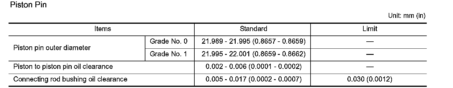 Piston, Piston Ring And Piston Pin (includes piston to cylinder bore clearance)