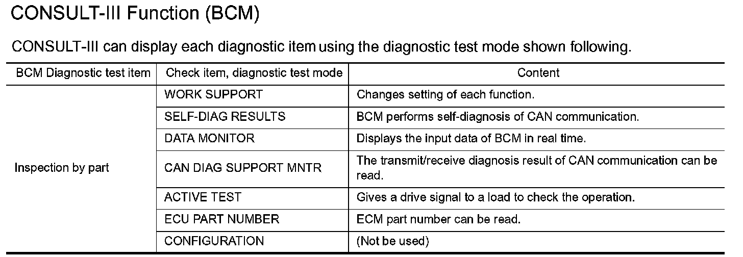 CONSULT-III Function (BCM)