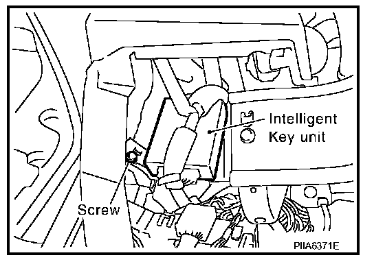 2. Disconnect the Intelligent Key unit connector, remove the screw and Intelligent Key unit.