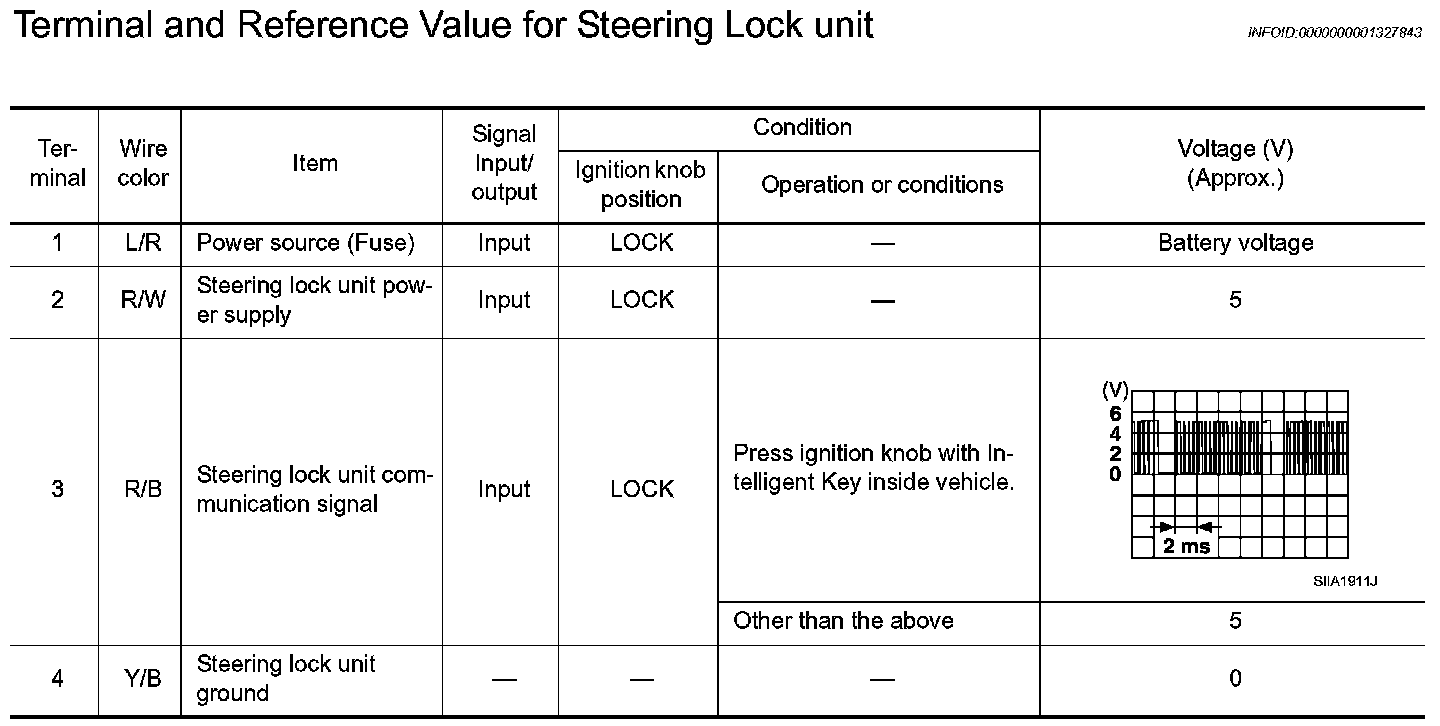 Terminal And Reference Value For Steering Lock Unit: