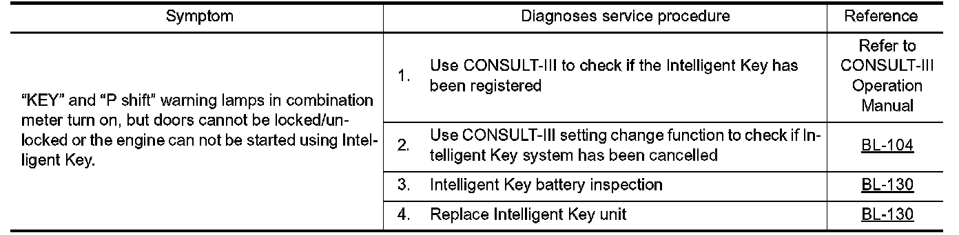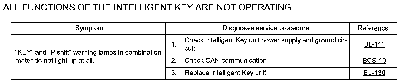 Trouble Diagnosis Symptom Chart - All Functions of the Intelligent Key Are Not Operating (Part 1):