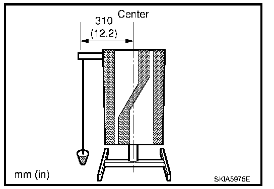 2. Suspend a thread with weight on the tip of the thread to 310 mm (12.2 in) left side of the target board from the center of the target board on top.