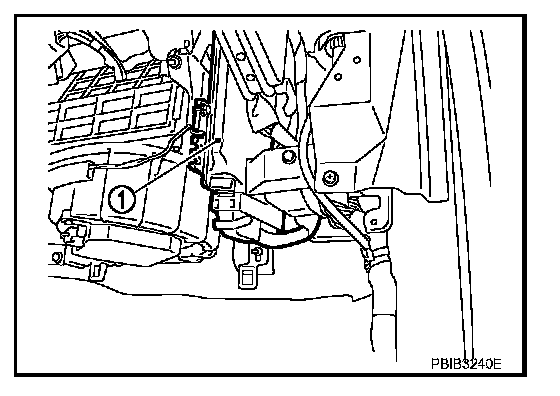 ECM (1) is located behind the passenger side instrument lower panel. For this inspection, remove passenger side instrument lower panel.