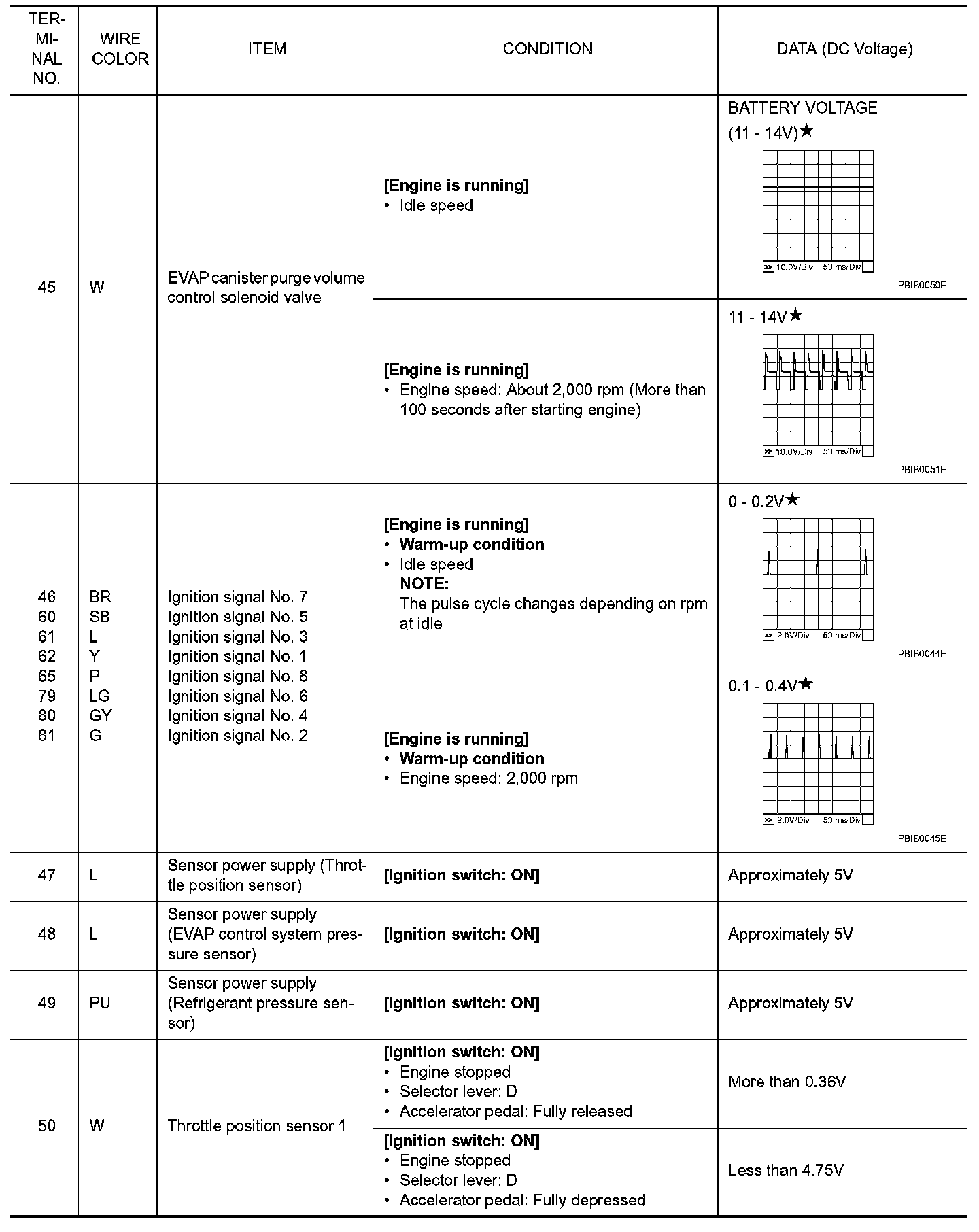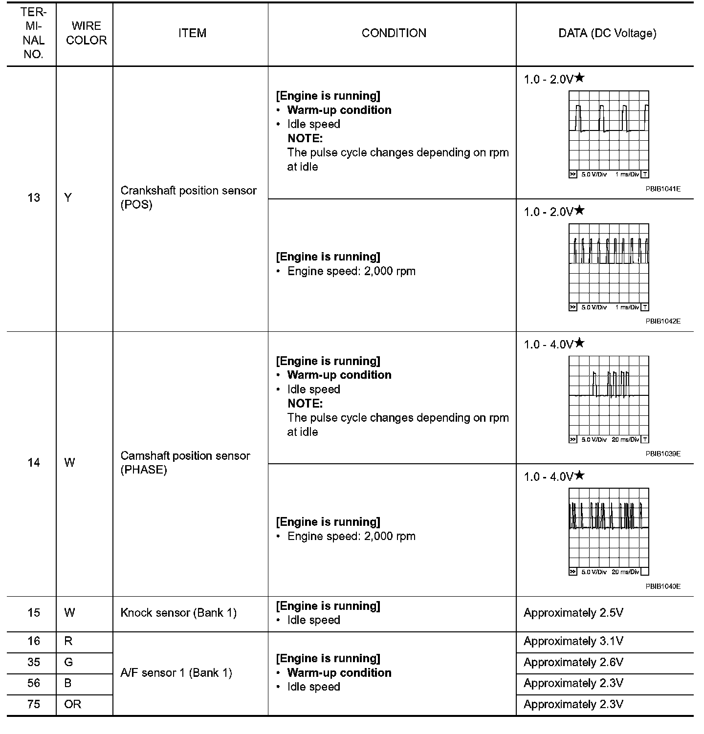 Specification data are reference values and are measured between each terminal and ground. Pulse signal is measured by CONSULT-III.