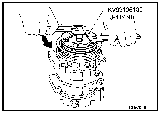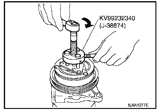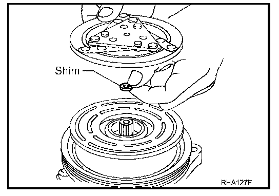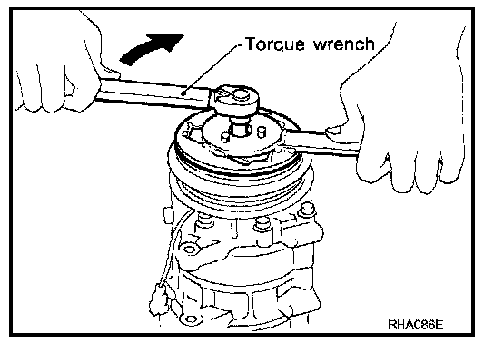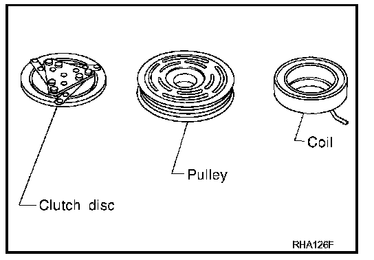 When replacing compressor clutch assembly, always carry out break-in operation. This is done by engaging and disengaging clutch about thirty-times. Break-in operation raises the level of transmitted torque.