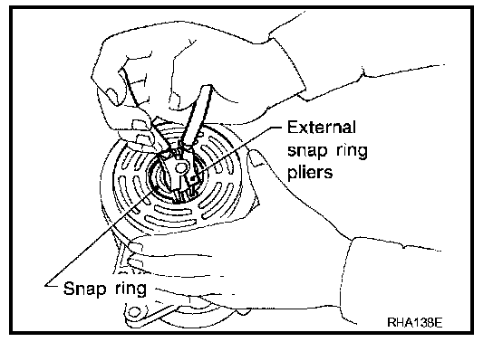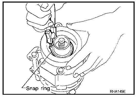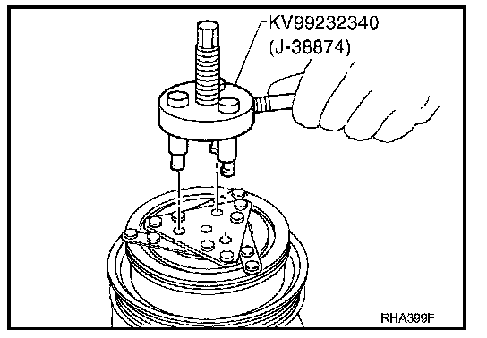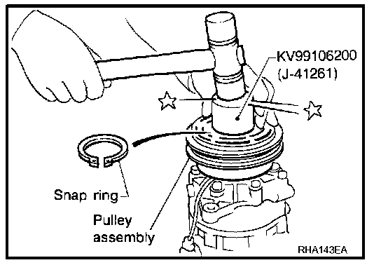 3. Install pulley assembly using pulley installer (SST) and a hand press, and then install snap ring using snap ring pliers.
