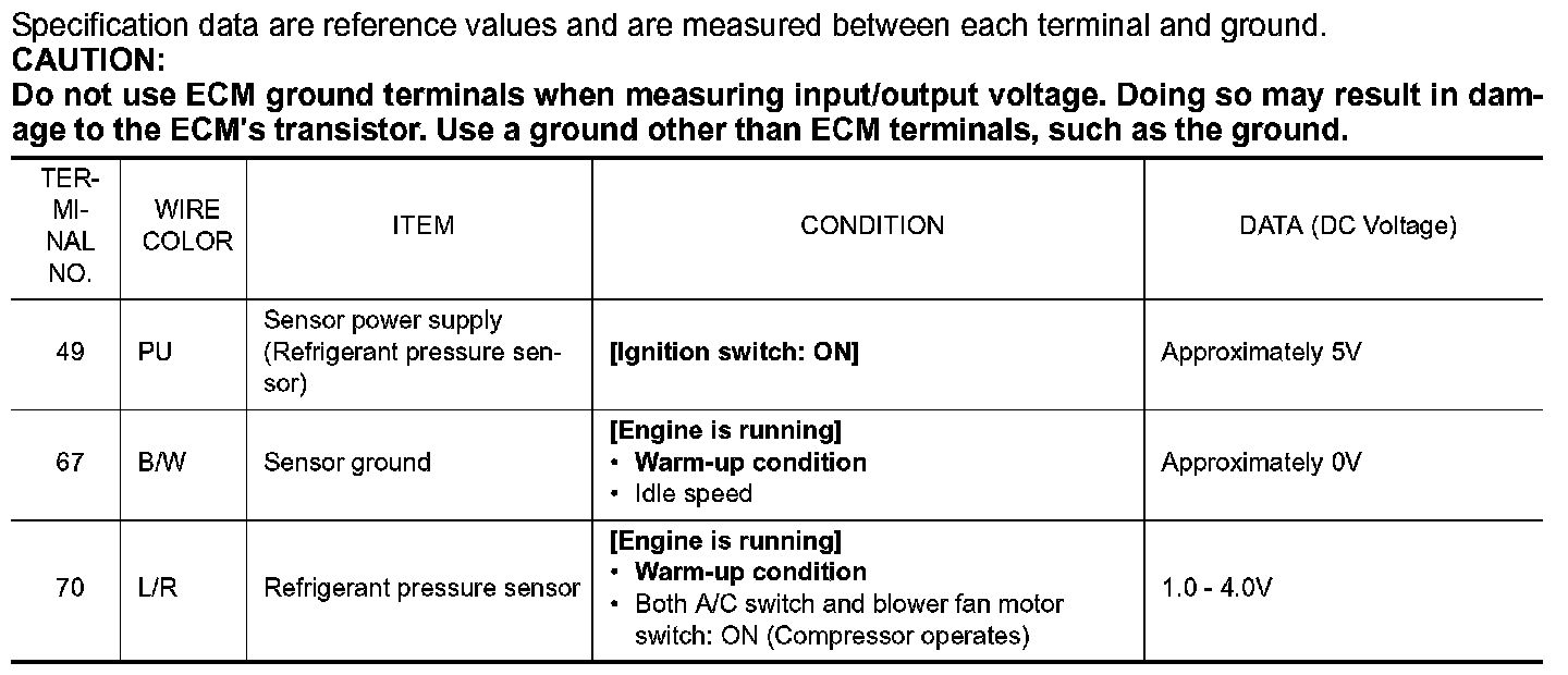 Refrigerant Pressure Sensor / Switch: Testing and Inspection