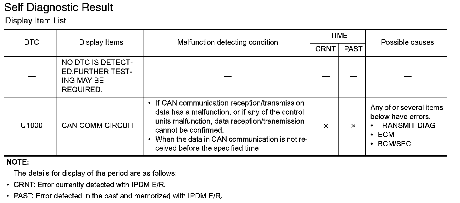 Display Item List - Self Diagnostic Result: