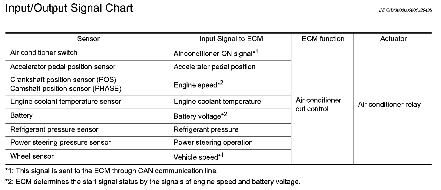 AIR CONDITIONING CUT CONTROLInput/Output Signal Chart