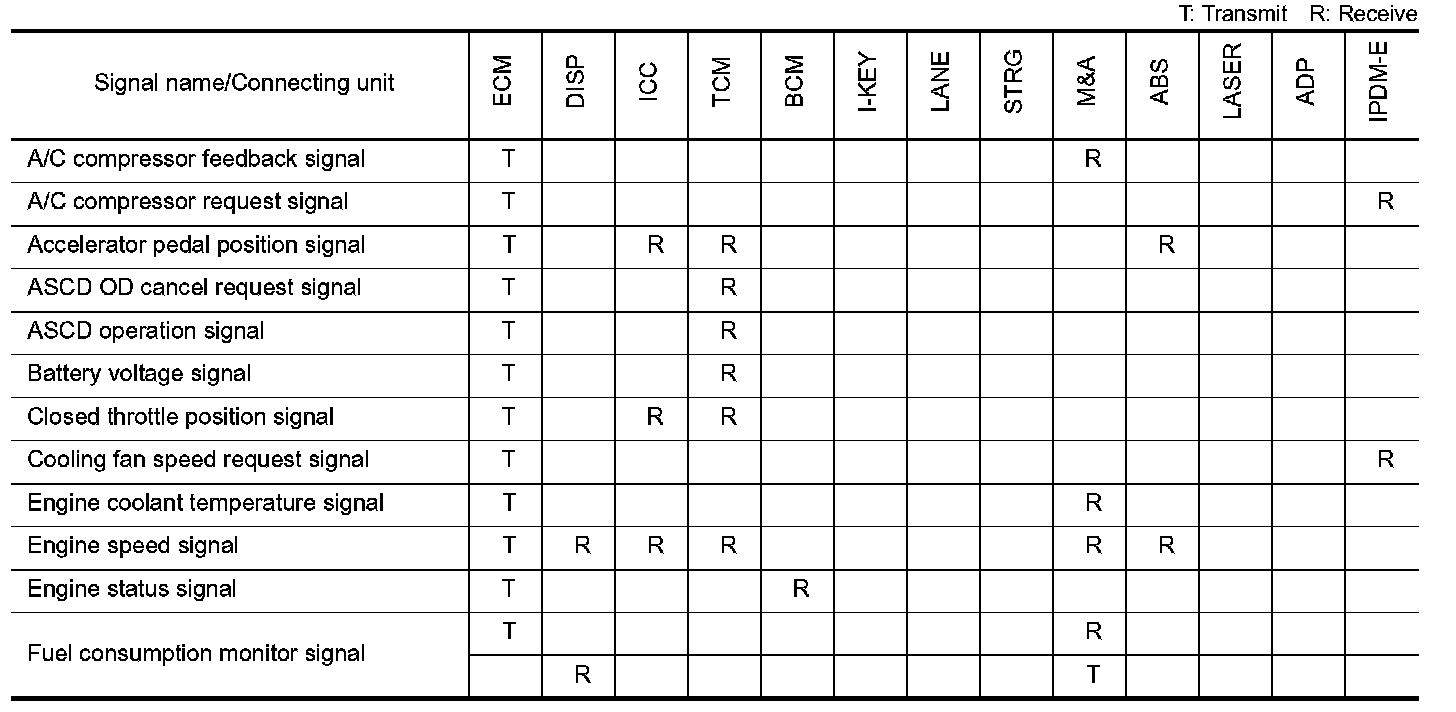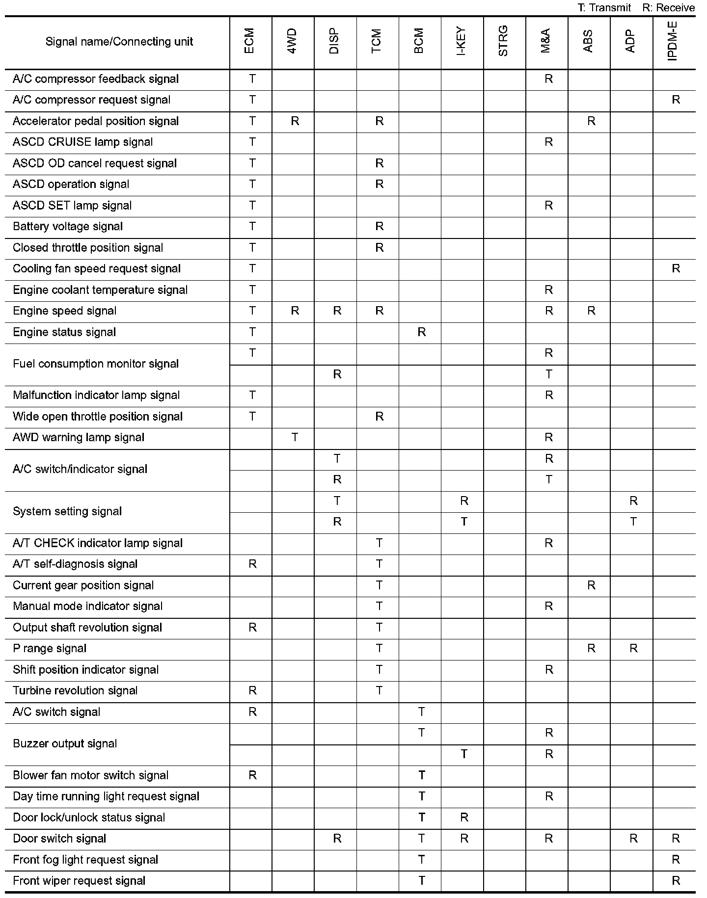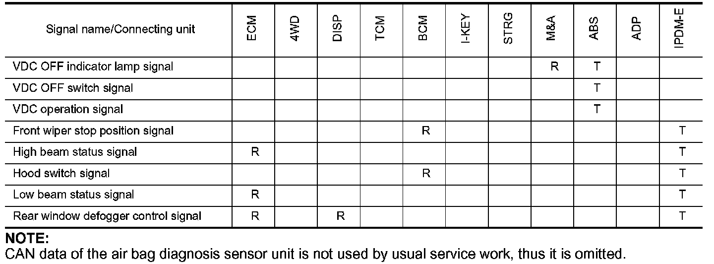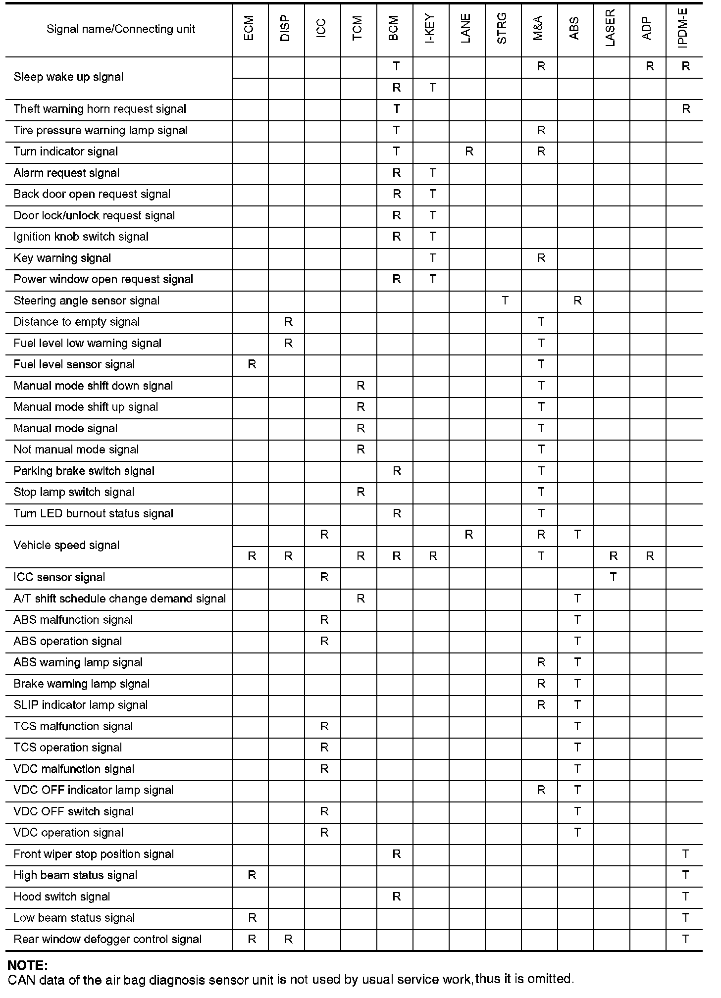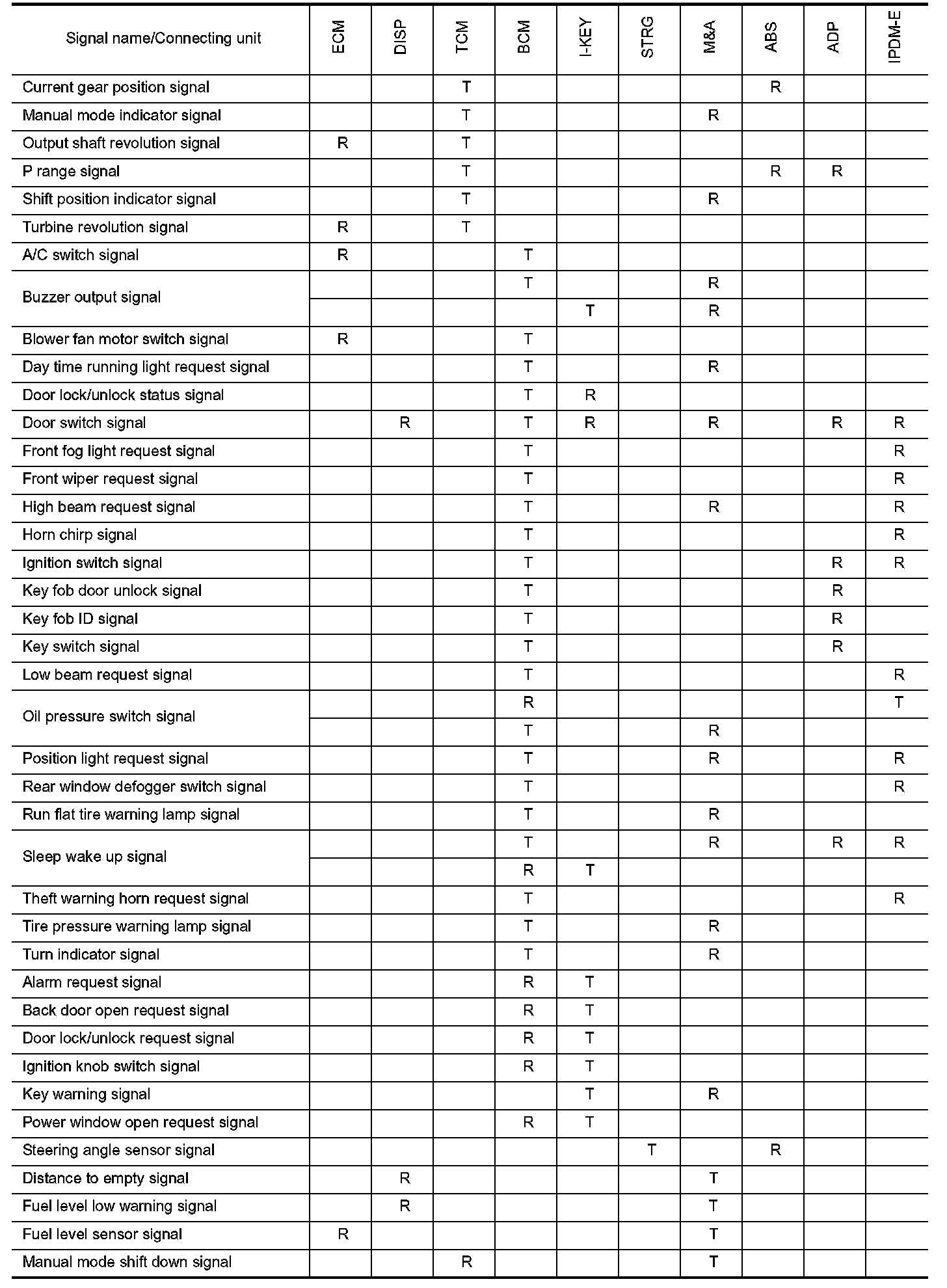 NOTE: Refer to LAN-37, "Abbreviation List" for the abbreviations of the connecting units. Abbreviation List