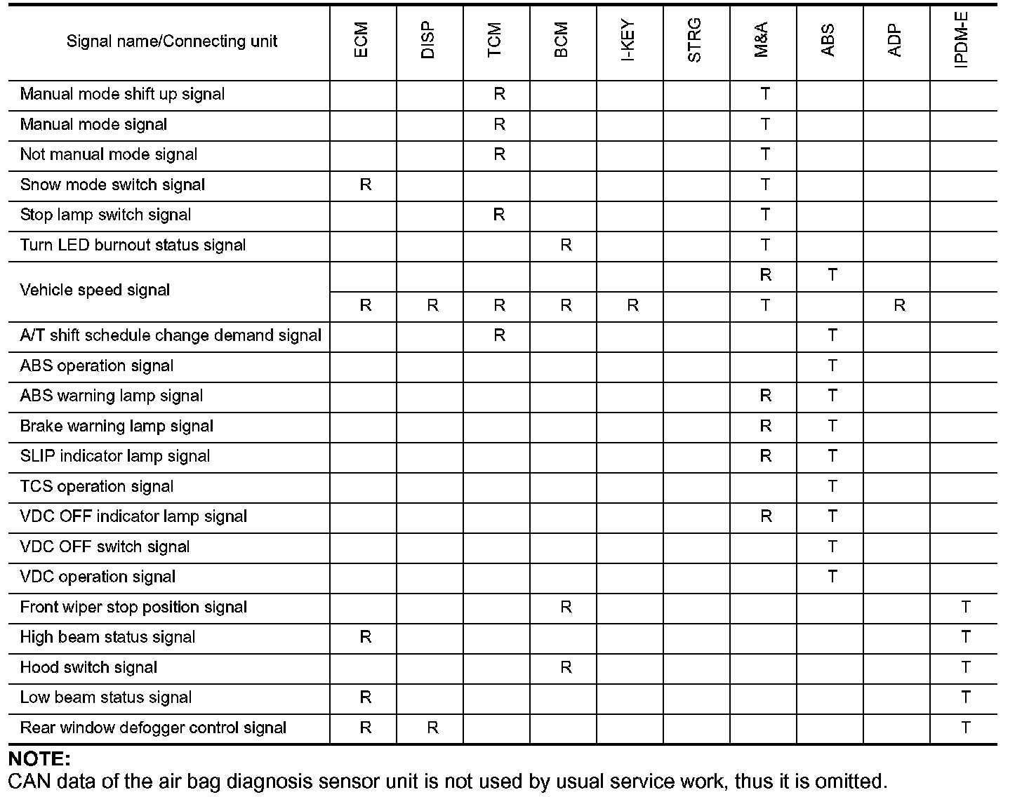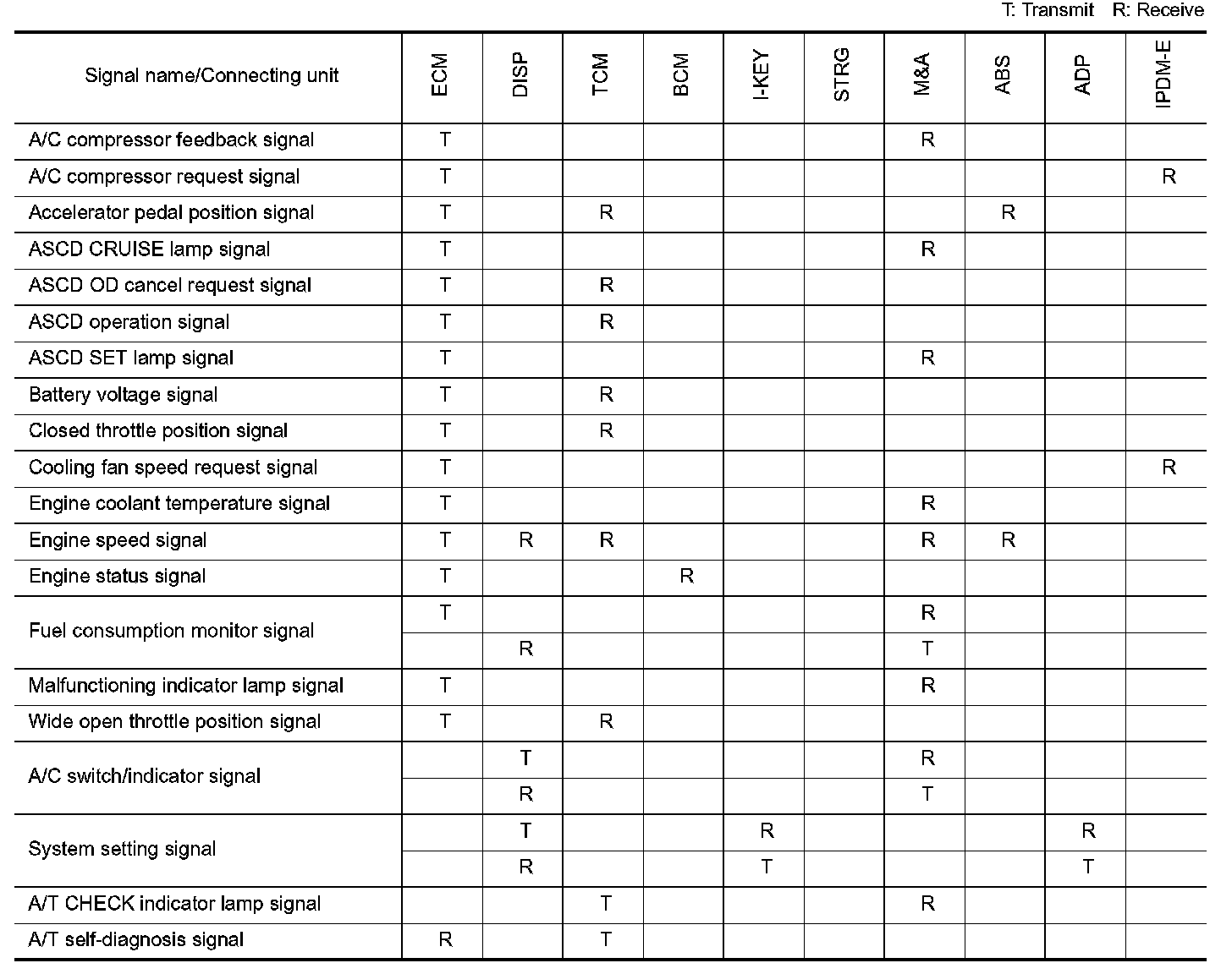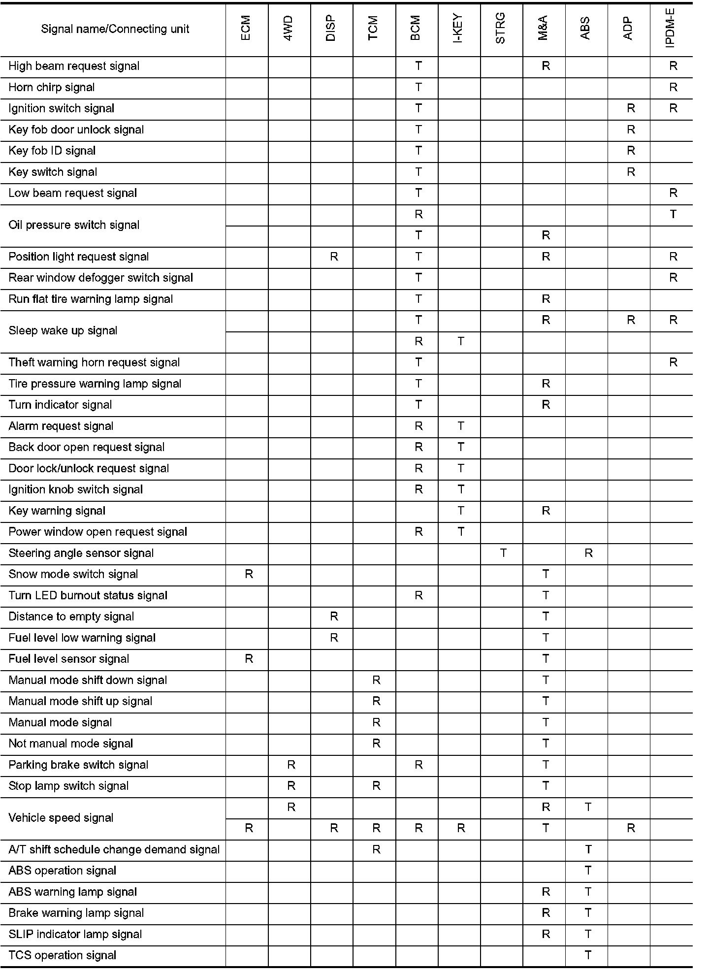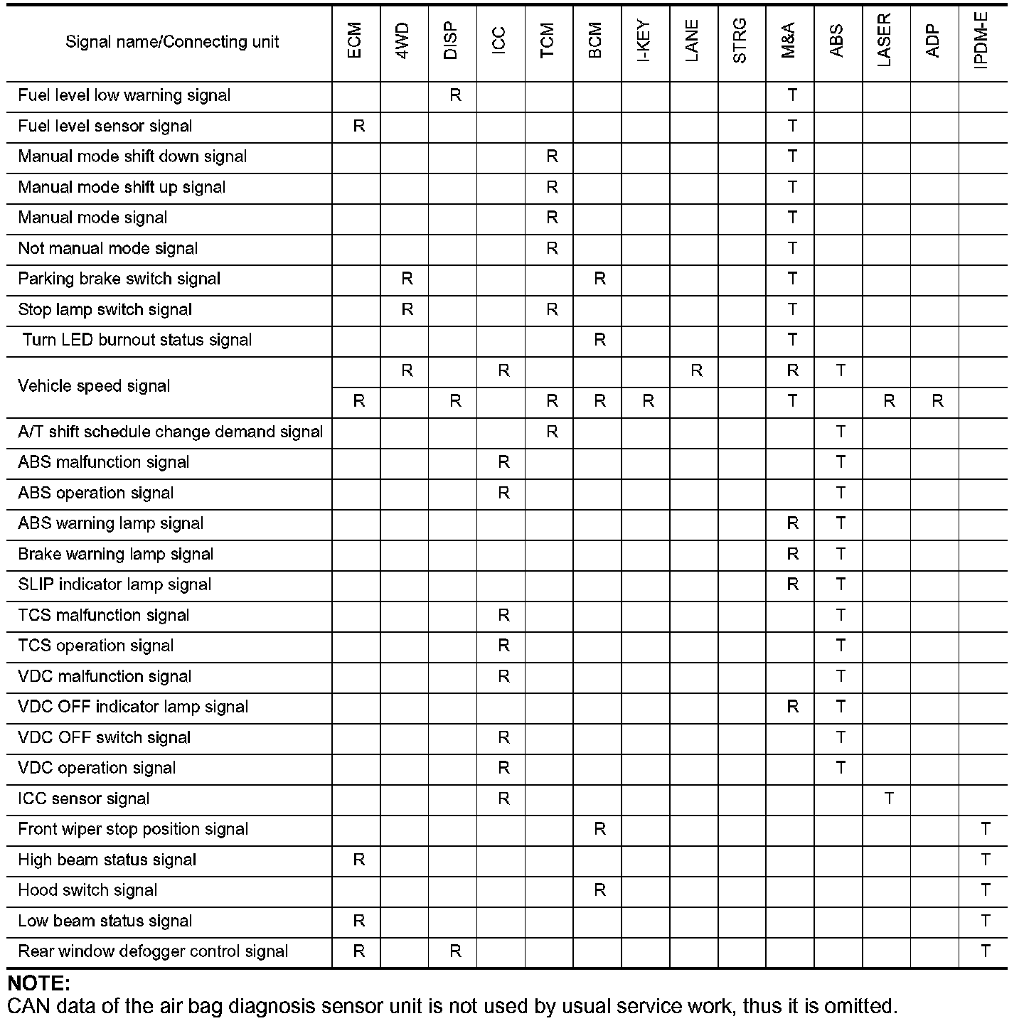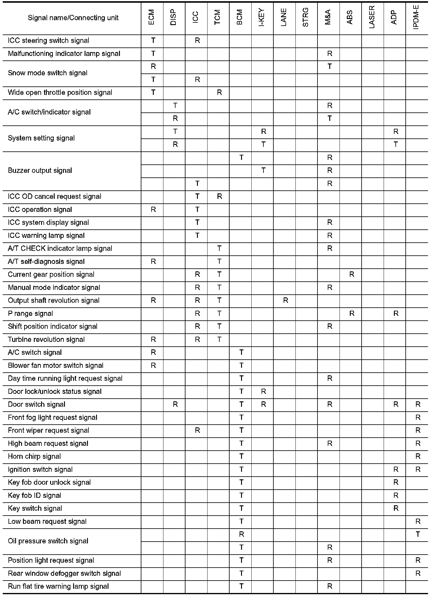 NOTE: Refer to LAN-37, "Abbreviation List" for the abbreviations of the connecting units. Abbreviation List