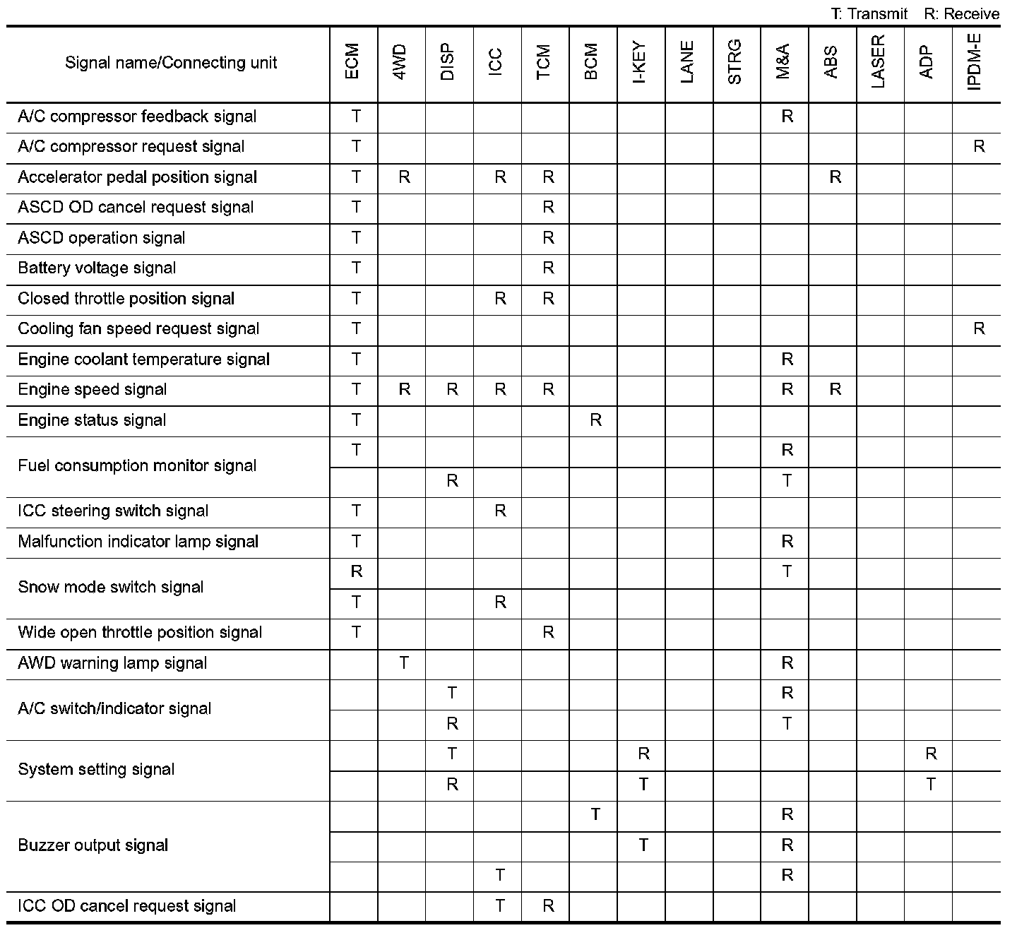 CAN Communication Signal ChartRefer to LAN-13, "How to Use CAN Communication Signal Chart" for how to use CAN communication signal chart. Trouble Diagnosis Work Flow