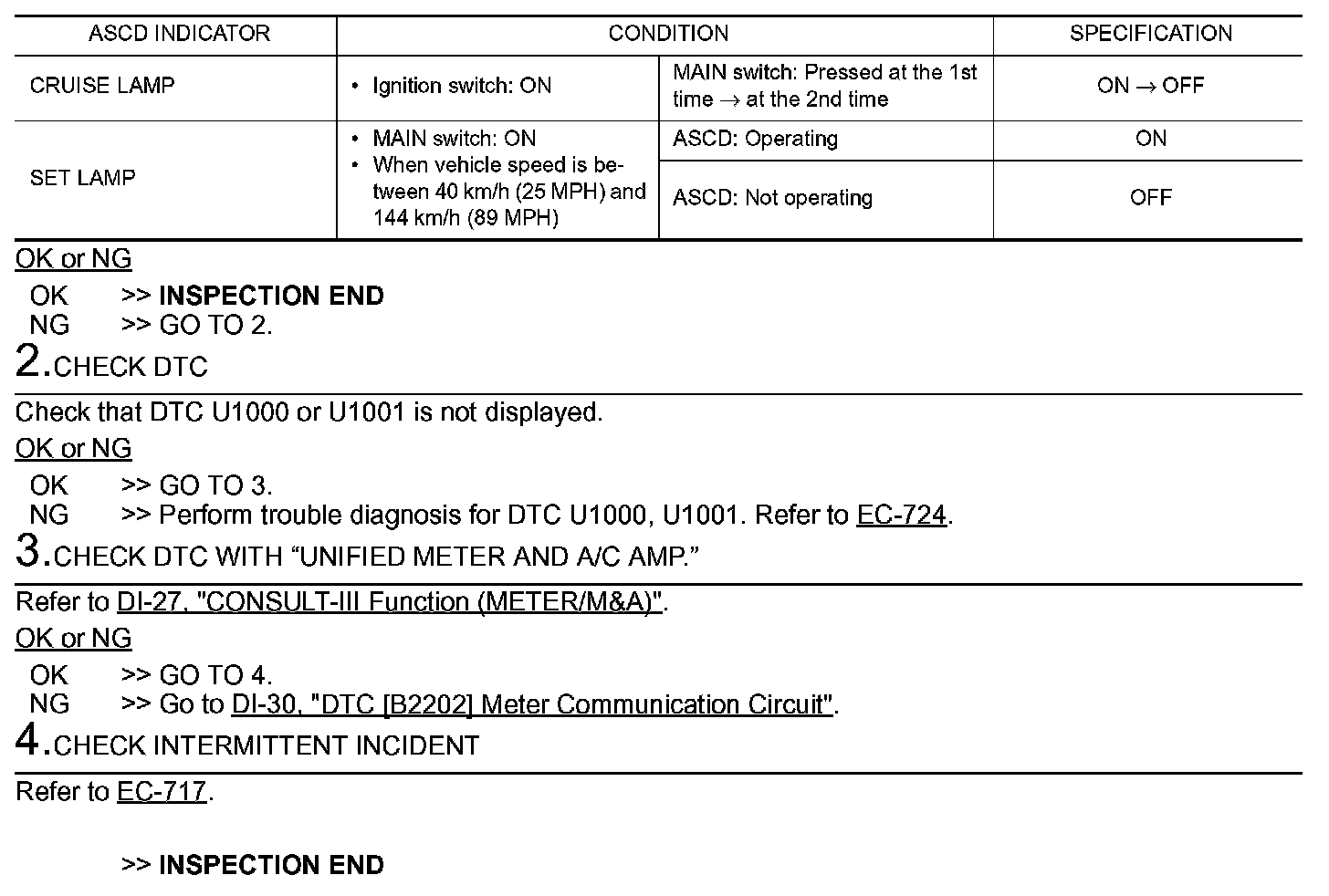 Refer to EC-615 for the ASCD function. Automatic Speed Control Device (ASCD)