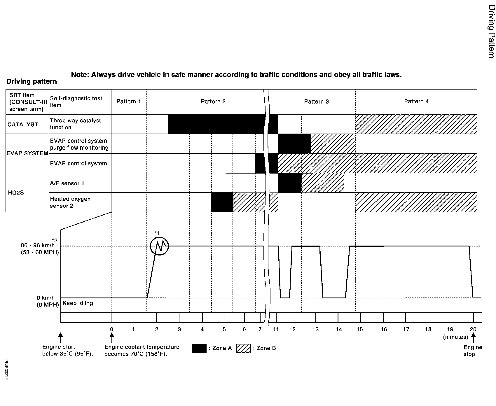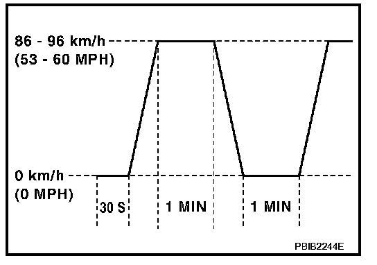 *1: Depress the accelerator pedal until vehicle speed is 90 km/h (56 MPH), then release the accelerator pedal and keep it released for more than 10 seconds. Depress the accelerator pedal until vehicle speed is 90 km/h (56 MPH) again.