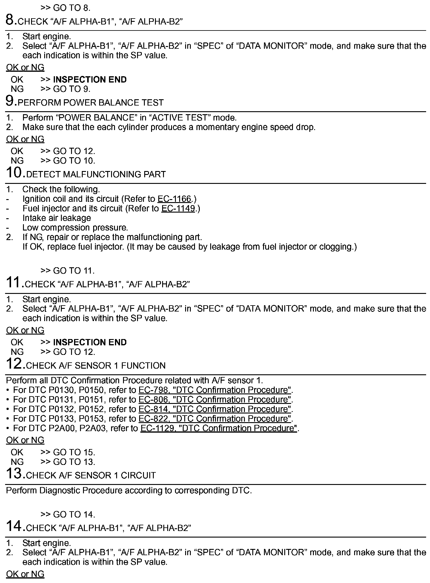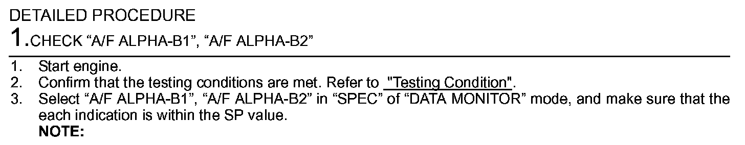 - A/F ALPHA-B1/B2 (The mean value of air-fuel ratio feedback correction factor per cycle)