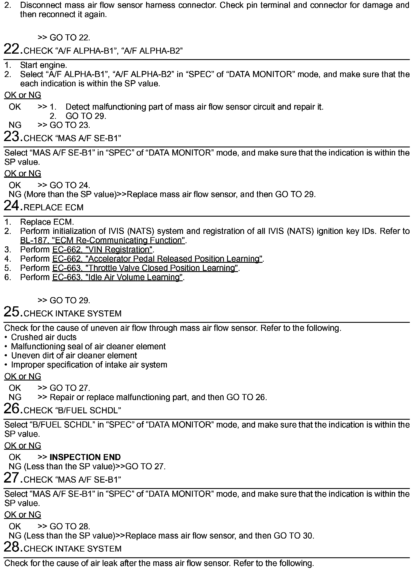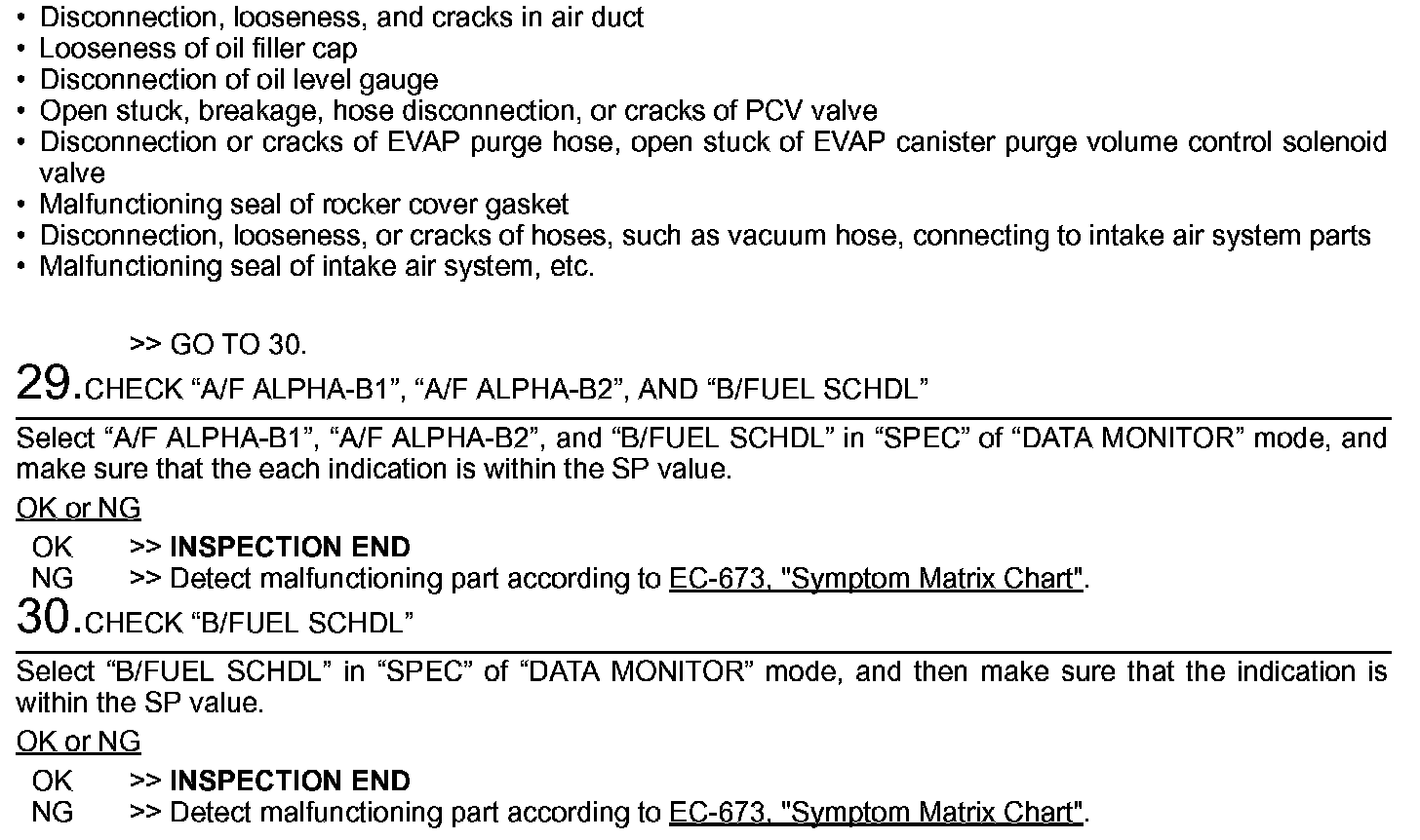 1. Perform EC-658, "Basic Inspection". Basic Inspection