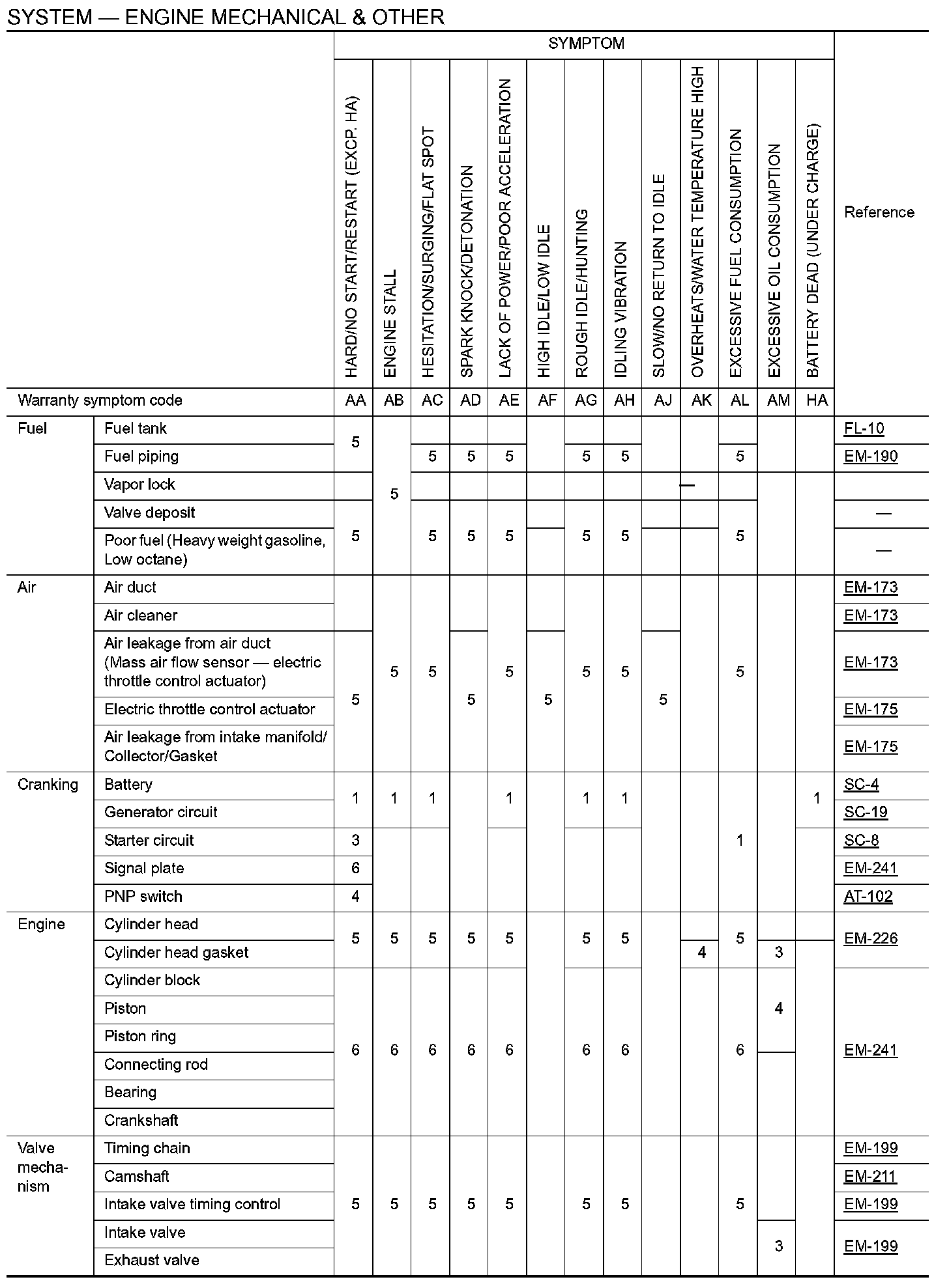 SYSTEM - ENGINE MECHANICAL & OTHER