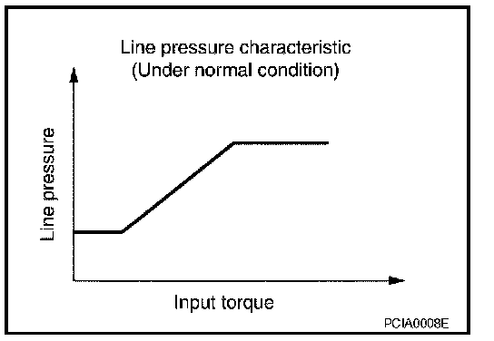 LINE PRESSURE CONTROL IS BASED ON THE TCM LINE PRESSURE CHARACTERISTIC PATTERN
