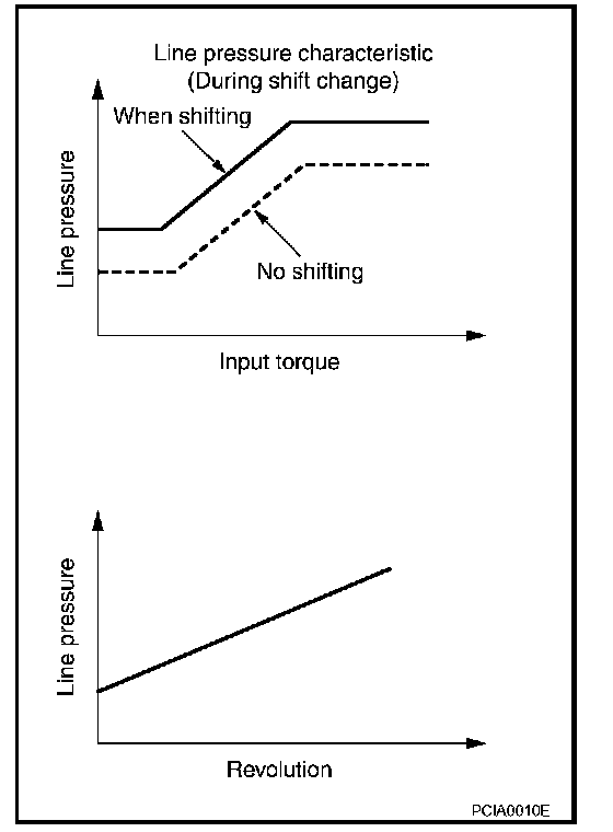 The necessary and adequate line pressure for shift change is set. For this reason, line pressure pattern setting corresponds to input torque and gearshift selection. Also, line pressure characteristic is set according to engine speed, during engine brake operation.