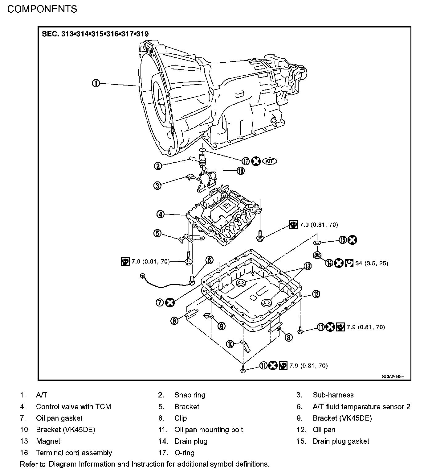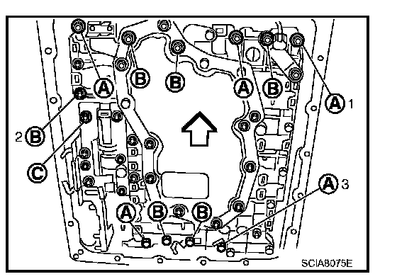 Tighten bolt 1, 2 and 3 temporarily to prevent dislocation. After that tighten them in order (1 ---> 2 ---> 3), and then tighten other bolts to the specified torque. Refer to "COMPONENTS".