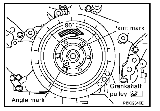 Put a paint mark on crankshaft pulley aligning with angle mark on crankshaft pulley bolt.
