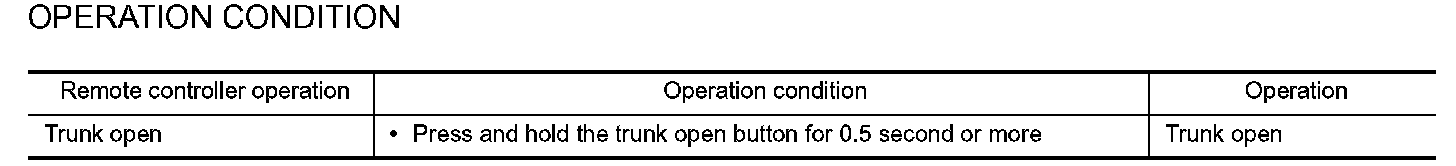 - When BCM receives the trunk open request signal, it operates the trunk lid opener actuator and opens the trunk.