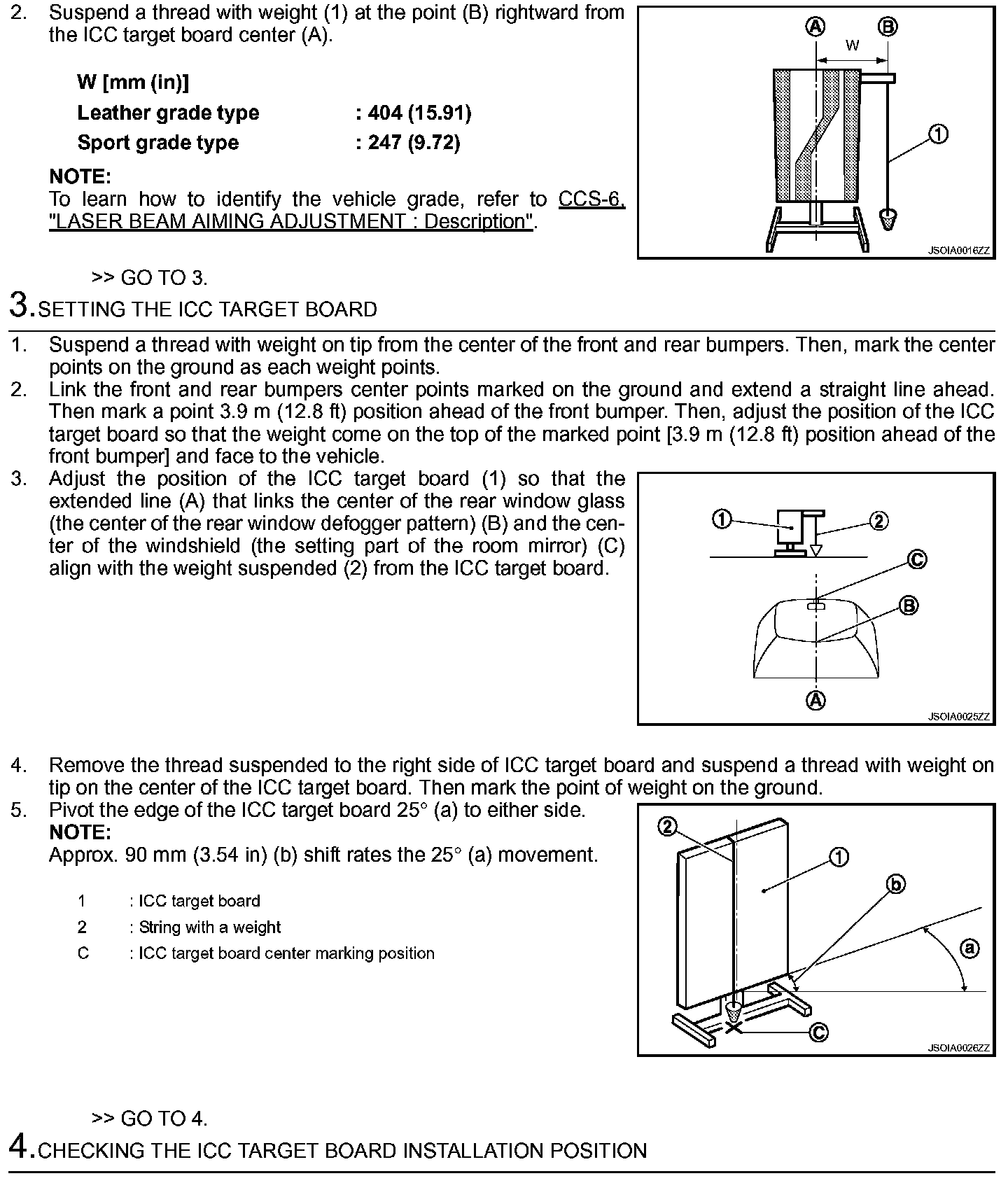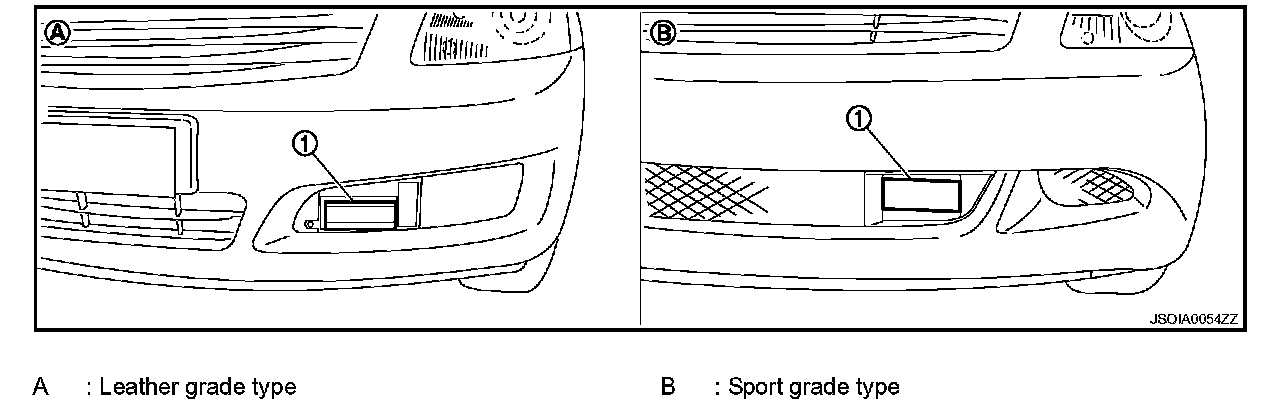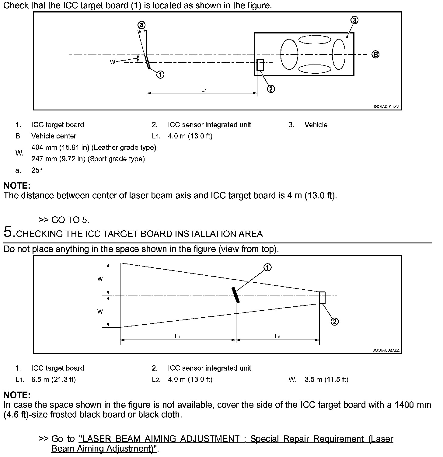 NOTE: The location of the ICC sensor integrated unit (1) differs according to the vehicle grade. So the ICC target board setting position varies accordingly.
