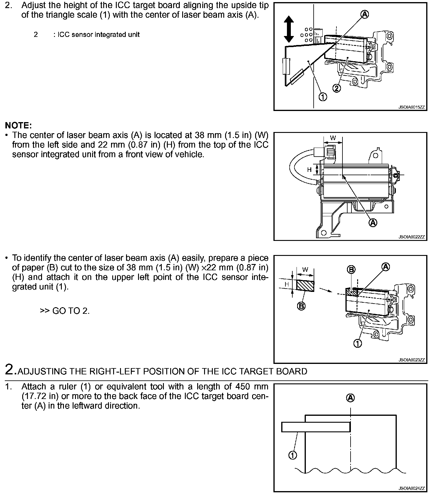 - Never view ICC sensor integrated unit body window directly during laser beam aiming adjustment.