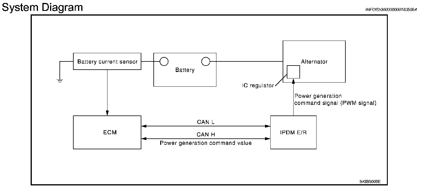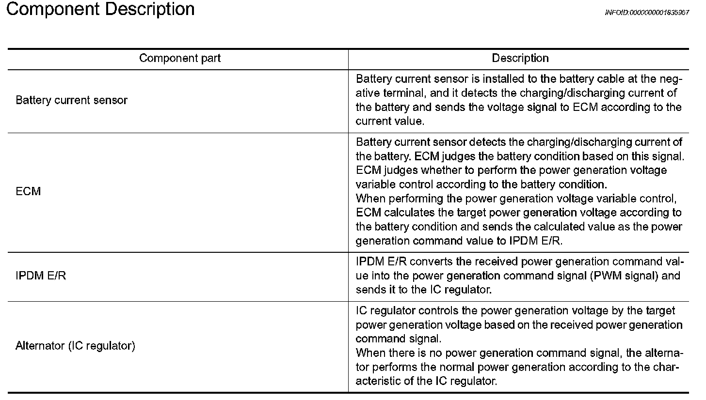 NOTE: When any malfunction is detected in the power generation voltage variable control system, the power generation is performed according to the characteristic of the IC regulator of the alternator.