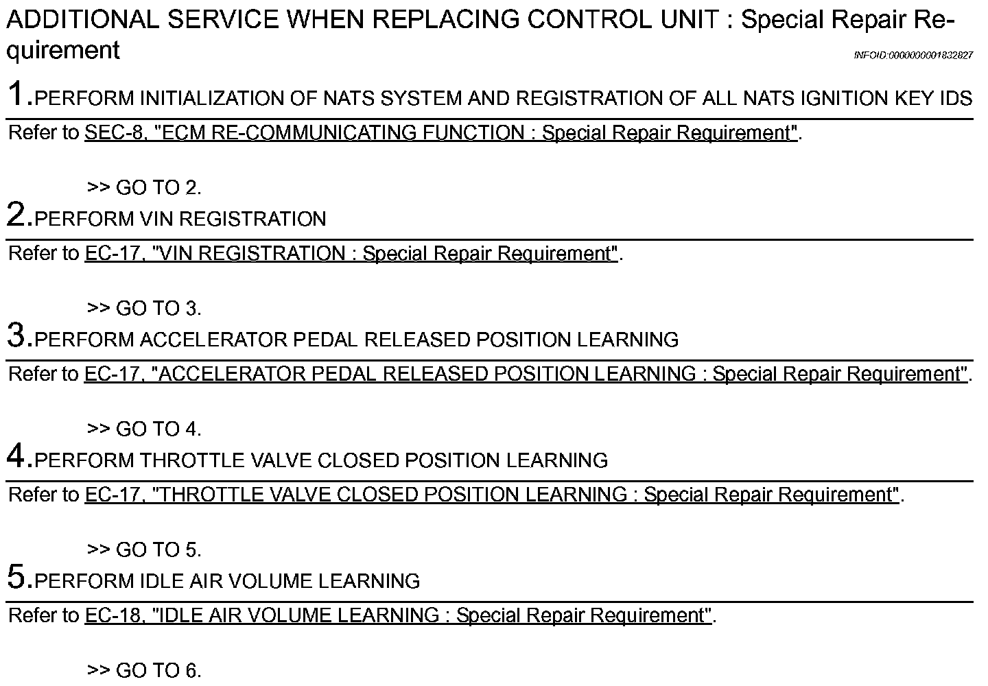 ADDITIONAL SERVICE WHEN REPLACING CONTROL UNIT: Special Repair Requirement
