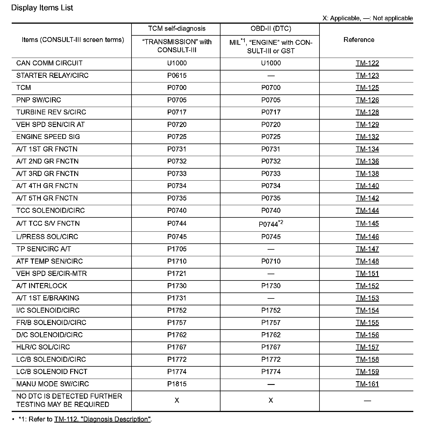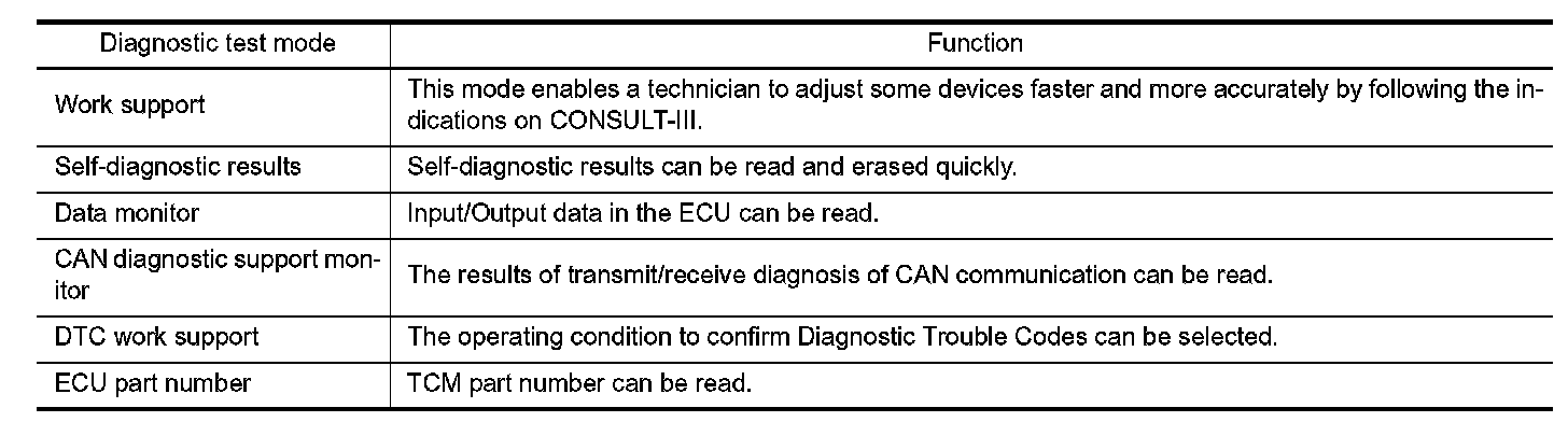 CONSULT-III Function (TRANSMISSION)CONSULT-III APPLICATION ITEMS