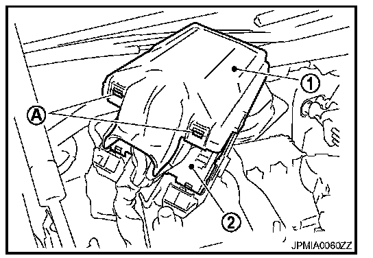 4. Remove the IPDM E/R cover A while pressing the pawl (A) at the lower end of the IPDM E/R cover A (1).
