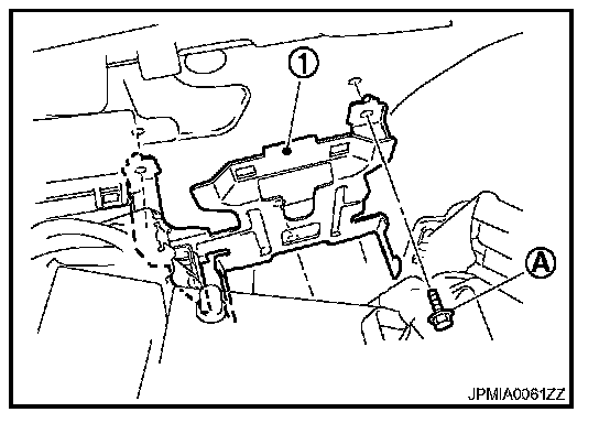6. Remove the bolt (A) and remove the bracket (1) from the vehicle.