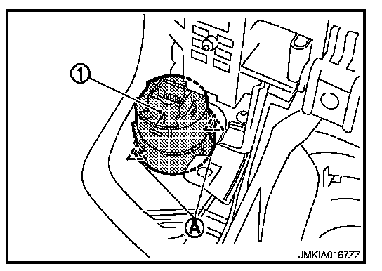 2. Remove the push-button ignition switch (1) from cluster lid A assembly, and then remove pawl (A). Press push-button ignition switch (1) back to disengage from cluster lid A assembly.