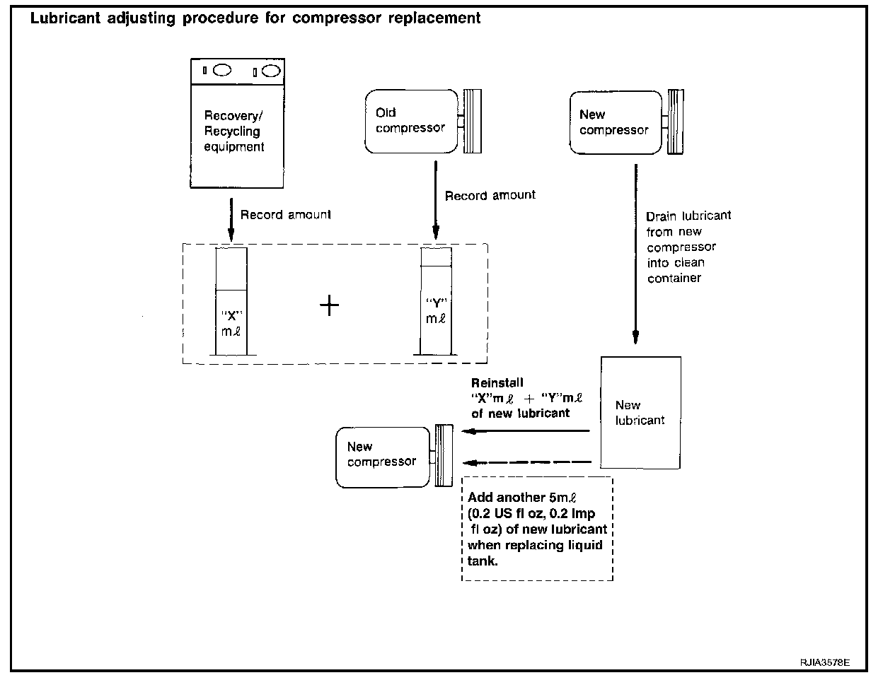 Do not add this 5 ml (0.2 US fl oz., 0.2 Imp fl oz.) of lubricant when replaces the compressor only.