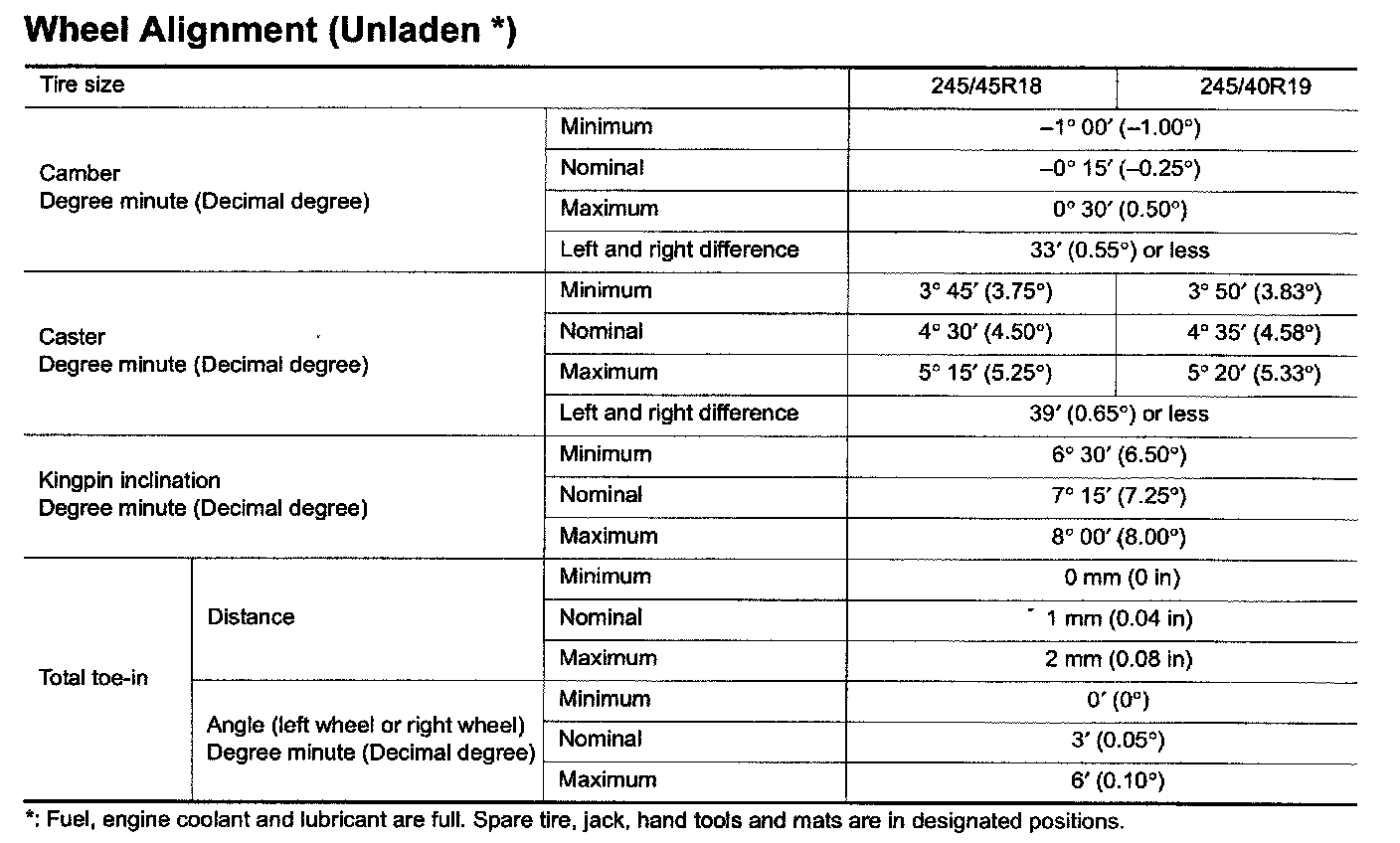 Wheel Alignment (Unladen*1)