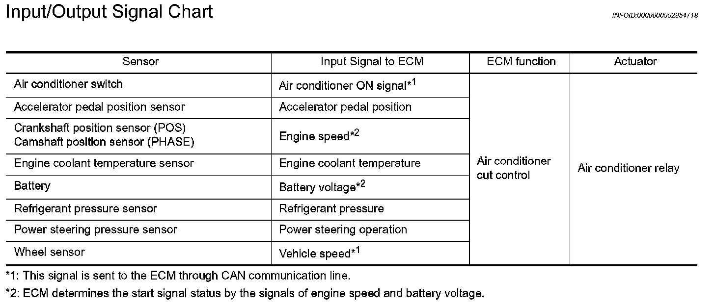 AIR CONDITIONING CUT CONTROLInput/Output Signal Chart